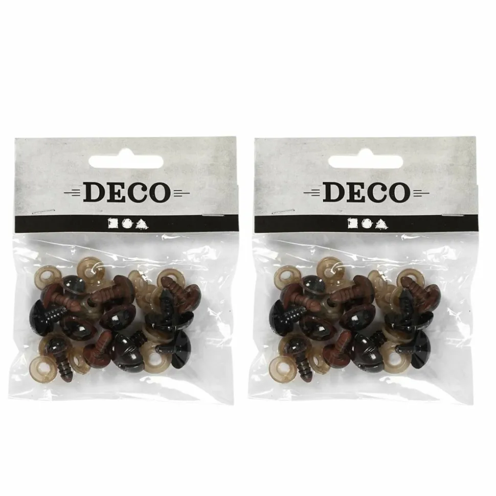 2 sachets de 12 nez et yeux. Assortiment de yeux et de nez pour oursons en peluche avec disque de verrouillage. Confectionnez vous même vos oursons en peluche ou reprenez en des abimés. Ces ensembles en plastique donneront un effet mignon à vos créations. Dimensions yeux : 10/12,5/15 mm. Dimensions nez : 15/25.