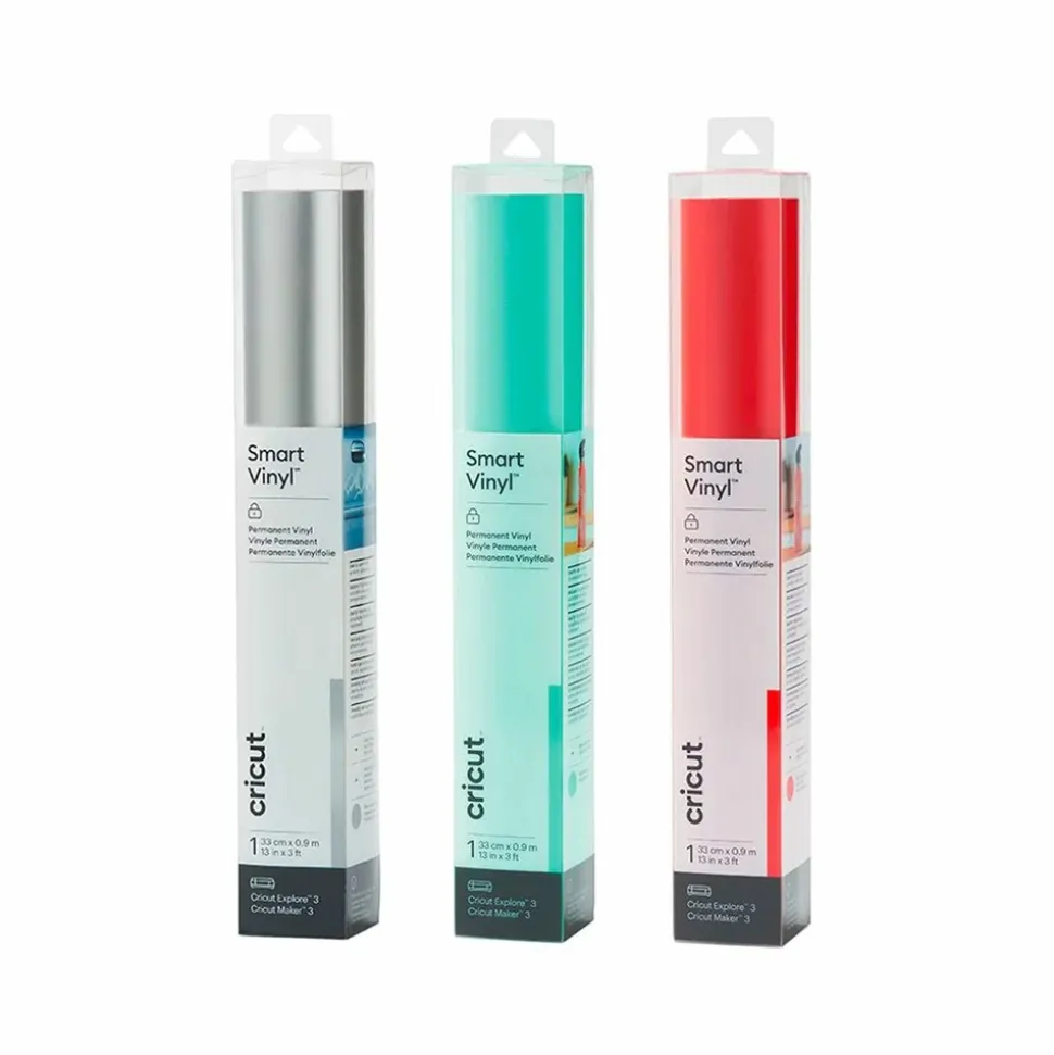 3 rouleaux de feuilles thermocollantes Cricut pour personnaliser les tissus. Grâce à la caractéristique smart de la feuill, pas besoin de tapis de découpe ! Posez votre découpe sur le textile souhaité et utilisez votre fer à repasser ou la Easy Press 2 de chez Cricut. Conseils d’utilisation : attendez 24h après l’application, avant le lavage, lavez et séchez à l’envers, ne blanchissez pas, repassez uniquement l’arrière du vêtement. Les thermocollants Sportflex de chez Cricut sont fins et légers et sont faits pour s’étirer et fléchir sur les vêtements. Ils sont adaptés à des tissus comme le nylon et le polyester. Compatible avec toutes les machines Cricut Explore et Maker. Pour la Maker 2 et la Explore 2, l’utilisation d’un tapis de découpe est nécessaire. Couleurs : argent mat (Référence Cricut : 2008627), menthe (2008629), rouge (2008633).