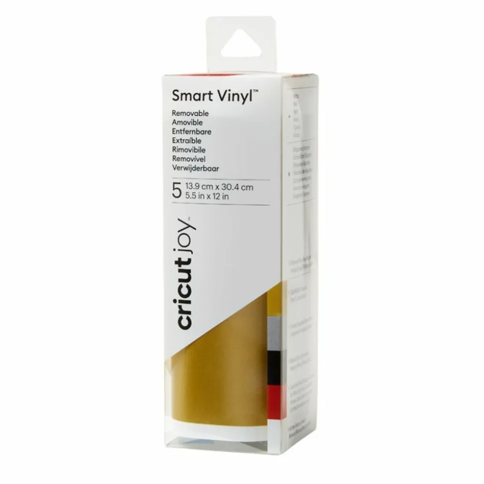 Personnalisez vos créations en un rien de temps grâce à ces 5 rouleaux de vinyle amovible ! Il vous suffira de découper le motif ou l’écriture souhaité à l’aide de votre machine de découpe puis de le déposer sur la surface souhaitée. Pour plus de faciliter vous pouvez utiliser une bande de transfert. Il est possible de l’utiliser avec n’importe quel matériau d’extérieur comme d’intérieur (verre, bois, pvc.). Vous pourrez ainsi décorer tout ce que vous souhaitez (coque de téléphone, verre, table, cahiers.). Ce vinyle est résistant à l’eau et aux UV ce qui lui permet de durer jusqu’à 3 ans. Il est possible de le repositionner et est idéal pour les stickers ! Il est compatible avec la machine de découpe Cricut Joy et ne nécessite pas de tapis de coupe. Découvrez également le reste de notre gamme de vinyles. Couleur : doré, noir, rouge et blanc. Dimensions : 30,4 x 13,9 cm. Référence Cricut : 2008037