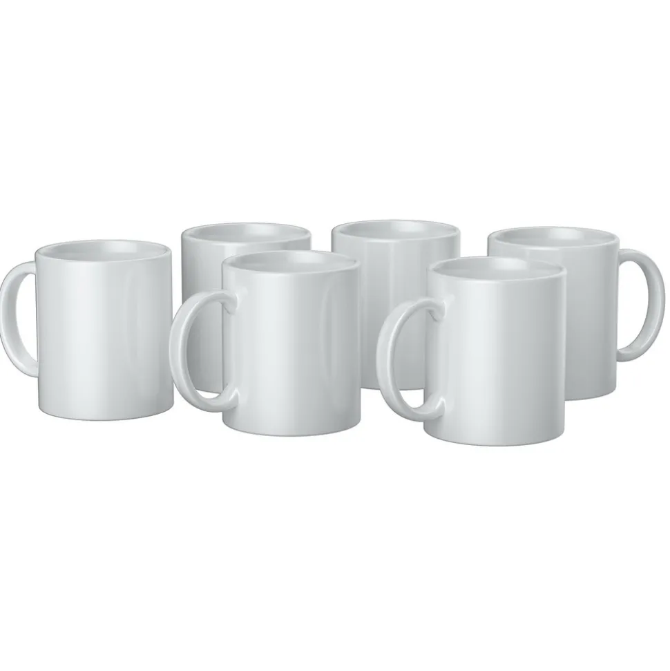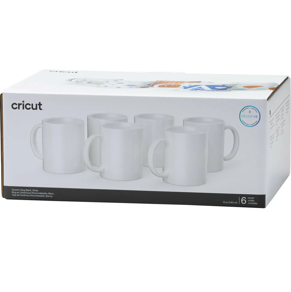 Réalisez des mugs personnalisés de qualité professionnelles en quelques minutes ! Cet ensemble contient 6 mugs haut de gamme d’une contenance de 340 ml, avec une finition en céramique lisse et bords arrondis pour des transferts à chaud faciles à réaliser. Utilisez la machine Cricut Mug Press et les produits Infusible Ink (vendus séparément) pour personnaliser ce support avec un mot, un logo, un dessin ou votre citation préférée. Contrairement au vinyle ou au flex thermocollant où le motif est fixé avec un adhésif, l’Infusible Ink fusionne totalement avec le textile et permet à l’encre de rester dans la fibre. Avec l’Infusibke Ink, vous aurez des résultats de transferts brillants, parfaitement lisses, qui ne se détachent pas, ne se décolorent pas et qui résistent au lavage. Les mugs Cricut passent lave-vaisselle et au micro-ondes. AVERTISSEMENT : le mug est extrêmement chaud juste après le transfert thermique. Utilisation limitée aux adultes. Contenance : 340 ml. Dimensions d’un mug : 10 x 8 cm environ. Référence Cricut : 2008942.