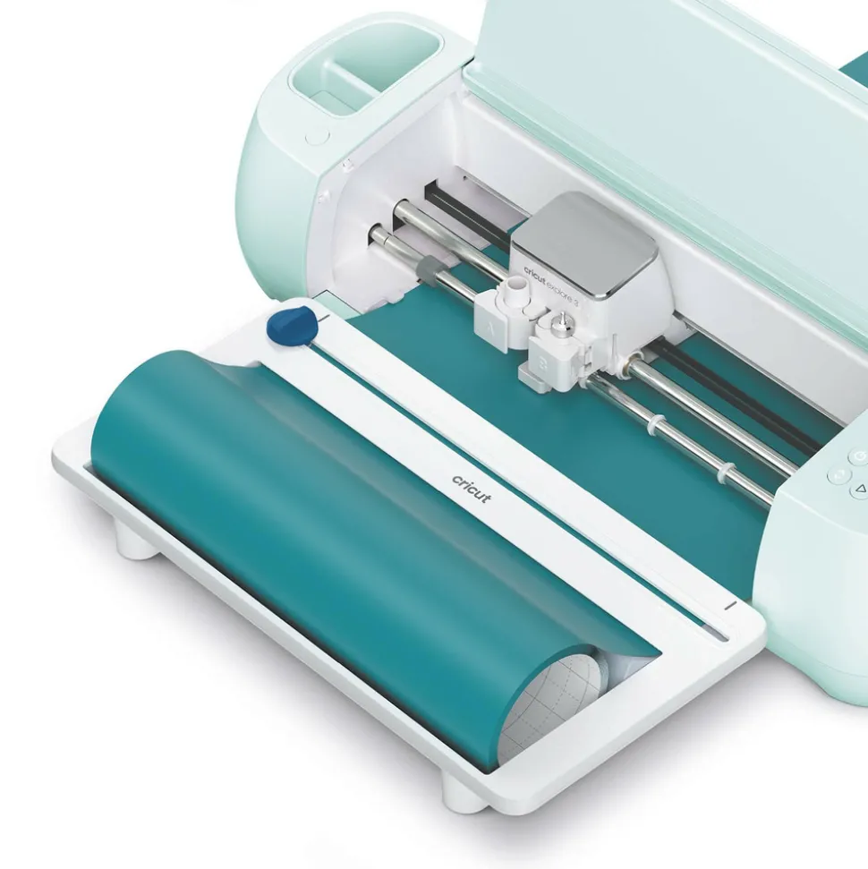 Ce dérouleur pour rouleaux Cricut ‘Smart Material’ de 3 à 22,8 m se fixe à votre machine de découpe Cricut Maker 3 ou Cricut Explore 3 en quelques secondes. Il permet de sécuriser votre matériel et le guider dans votre machine de découpe Cricut, mais aussi de découper vos projets sans tapis. Le chargeur de rouleau maintient votre materiel roulé et aligné pour des découpes nettes et précises. Le massicot intégré vous garantit un bord droit à chaque fois. Le dérouleur possède aussi un bac profond qui lui permet d’accueillir les rouleaux de Cricut ‘Smart Materials’ jusqu’à 22,8 m. Compatible uniquement avec les machine Cricut Maker 3 et Explore 3. Référence Cricut : 2009039.