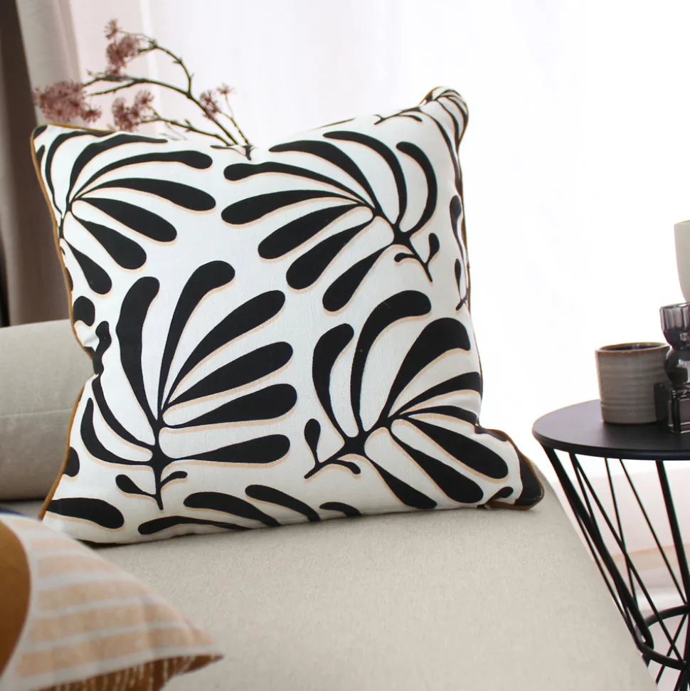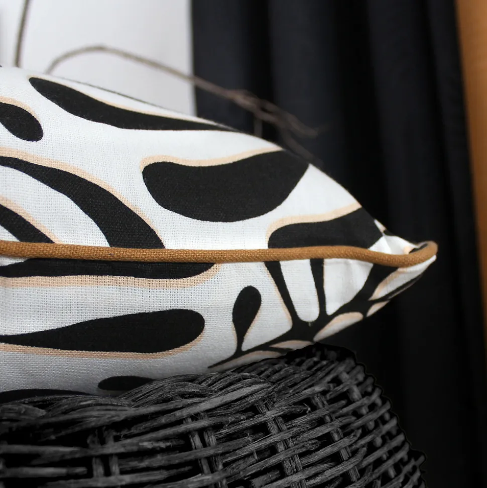 - Couleur : Noir et blanc, contours du coussin couleur café