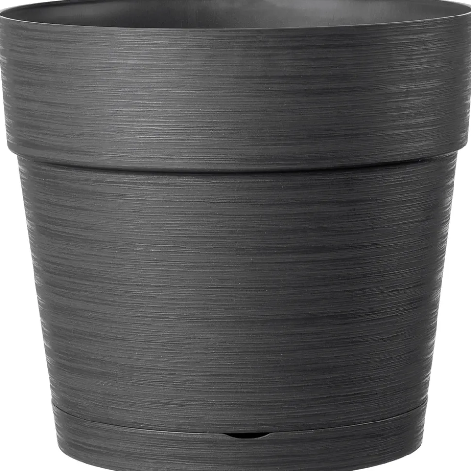 Ce pot Save R de couleur anthracite, présente un look sobre et moderne qui se fondera parfaitement avec tous les styles d’aménagement extérieur. 100% en matière recyclé et recyclable, il est résistant au gel et aux U.V. et vous garanti une longue tenue même en hiver. Disposant d’une réserve d’eau, ce cache-pot Save R sera votre allié pour prendre soin de vos fleurs et créer un véritable espace végétal sur votre terrasse. Dimensions : Ø28,8 x H. 26,2 cm.