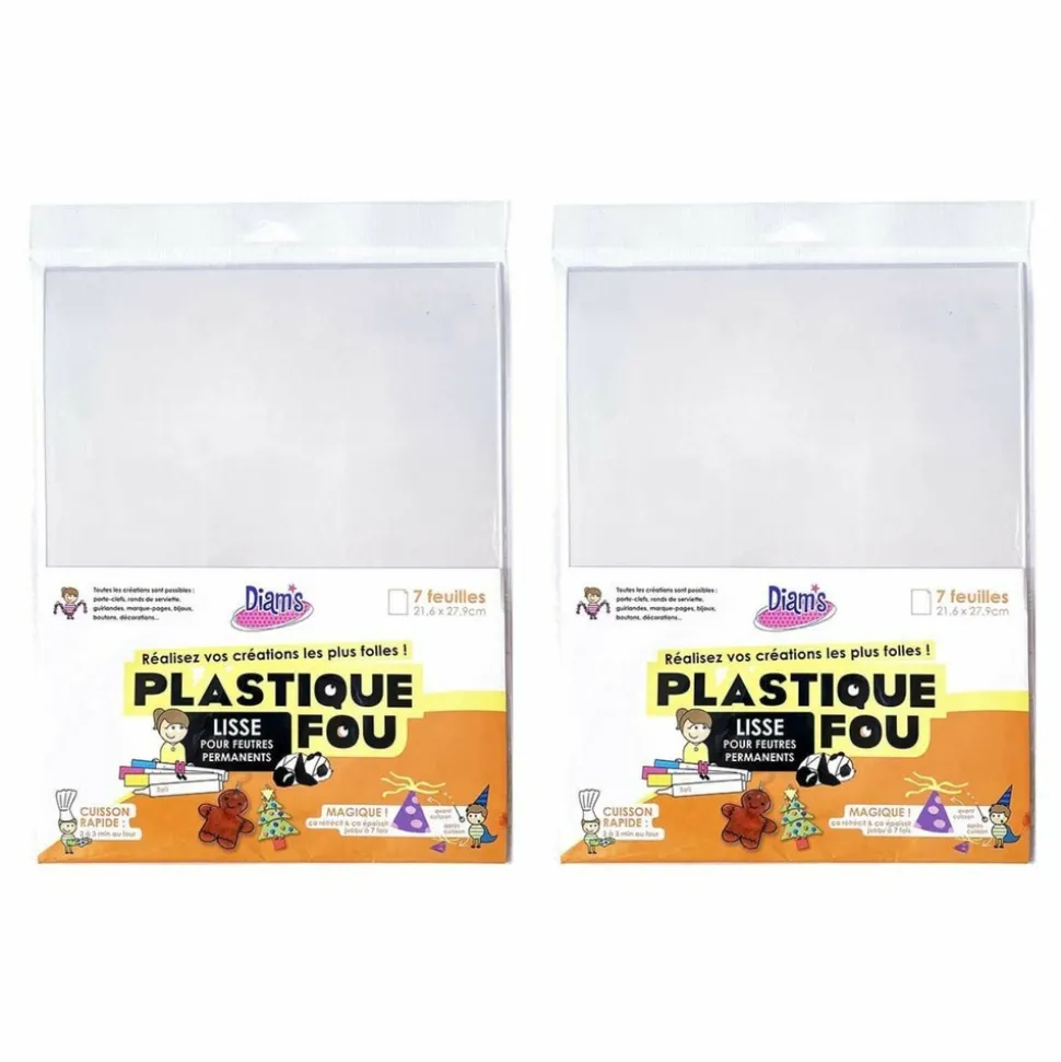 Connaissez-vous le principe du plastique fou ? Son nom est peut être originale mais son principe d’utilisation est très simple ! À partir d’une simple feuille dédiée à cette activité, dessinez et couper la forme que vous souhaitez dans le plastique fou et passez-le à minutes au four. Votre création va rétrécir énormément : c’est normal ! Le plastique fou durcit et perd jusqu’à 7 fois sa taille lorsuq’il est chauffé. Créez porte-clés et autres petits objets grâce à cette technique. Vous pouvez l’utiliser avec des feutres, crayons de couleurs mais aussi avec de la peinture acrylique. Activité très ludique à réaliser et à regarder se transformer. Le plastique fou cristal de chez Diam’s s’apparente à du verre et s’utilise principalement avec des feutres. Il est très facile de l’utiliser comme calque pour reproduire le motif que vous souhaitez. Contient 2 kits de 7 feuilles.