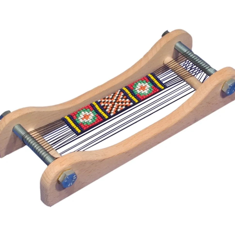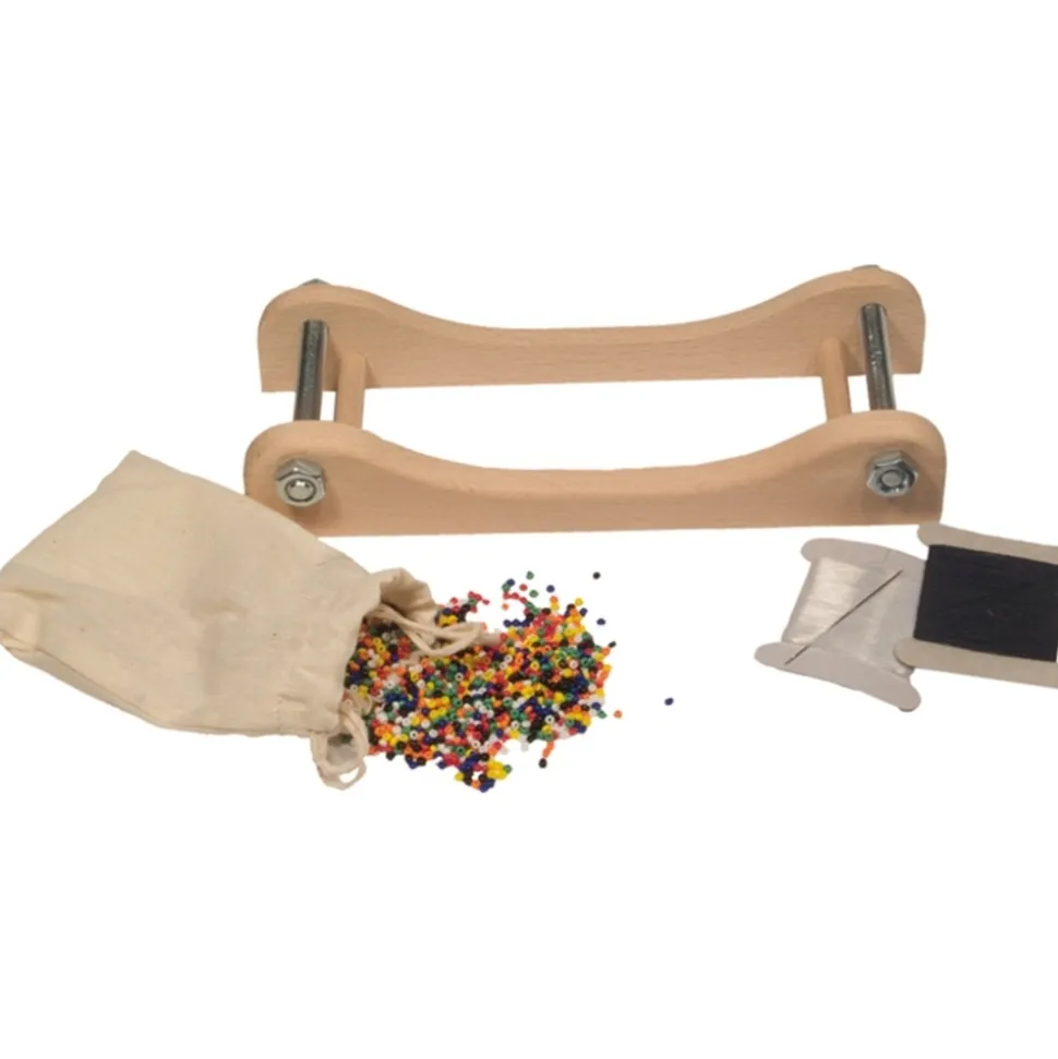 Petit cadre de tissage avec des perles. Un kit simple, une activité créative et sympa pour confectionner des bracelets brésiliens et d’autres bijoux de perles. Un cadre de tissage en bois (20x9x4cm) livré avec 50 grammes de perles en verre de couleur, une bobine de fil avec une aiguille spéciale et des instructions. Un cadeau magique, qui développe la concentration et fait travailler avec précision et exactitude. L’outil indispensable pour réussir ses bracelets brésiliens !