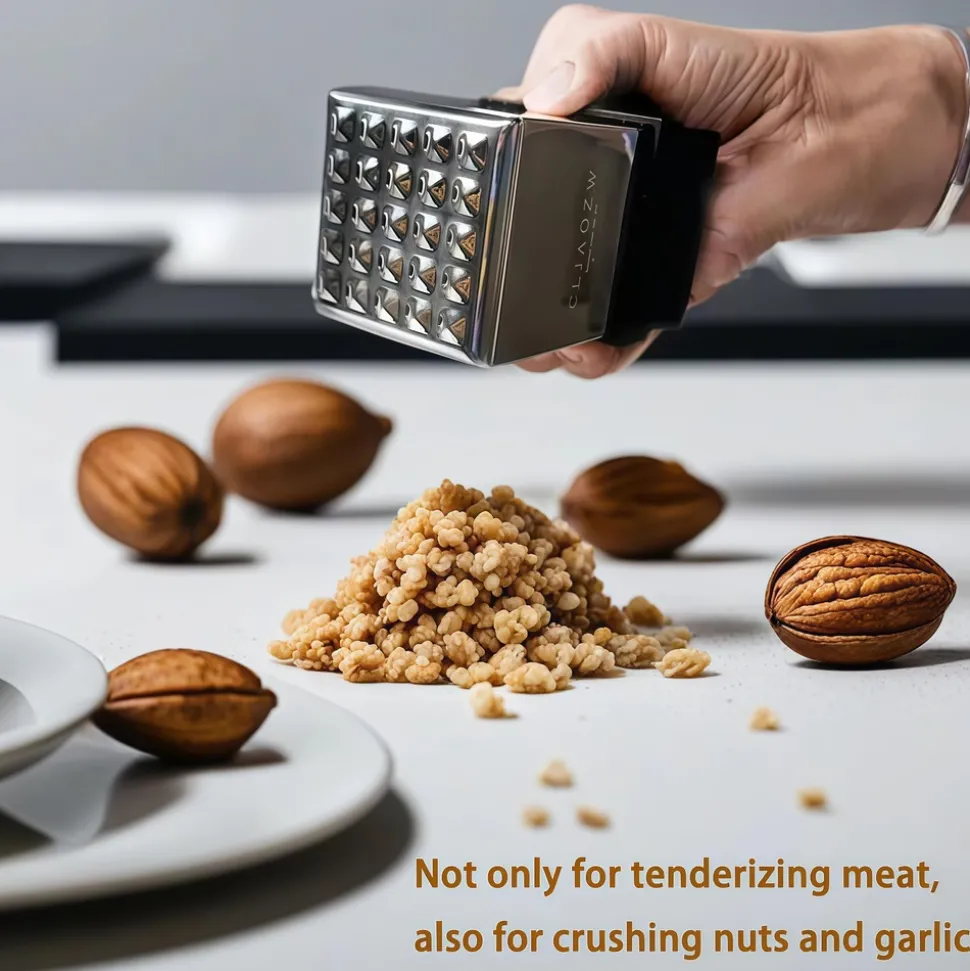 Dans le monde de la cuisine, posséder cet attendrisseur de viande double face 2 en 1 en acier inoxydable est comme avoir une clé magique pour améliorer le goût des mets. Ses 36 lames à aiguilles tranchantes peuvent facilement pénétrer divers aliments tels que steaks, poissons, noix et crustacés. Lorsque vous utilisez cet outil pour traiter un steak, les lames à aiguilles brisent les fibres de la viande, rendant la viande plus tendre et juteuse, fondante dès la première bouchée. Pour le poisson, il permet au poisson d’absorber mieux les saveurs des condiments lors de la cuisson, offrant un goût plus délicieux. Pour les noix et les crustacés, il peut également assouplir et imprégner les aliments. La conception double face augmente la flexibilité d’utilisation. Le matériau en acier inoxydable est non seulement solide et durable, mais aussi facile à nettoyer, pouvant accompagner votre voyage culinaire pendant longtemps et transformant chaque repas en un festin délicieux.