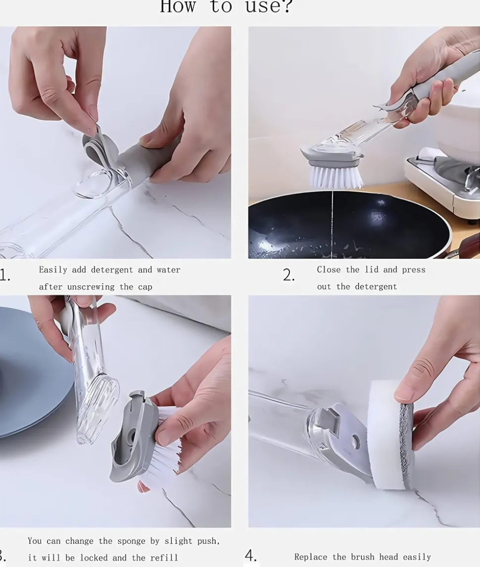 Dans le nettoyage de cuisine, cette brosse de nettoyage 2 en 1 à long manche est un véritable allié. Elle combine intelligemment le distributeur d’éponge et la brosse à vaisselle, un seul outil répondant à divers besoins de nettoyage. La conception du manche long est très attentionnée. Lorsque vous nettoyez les parties profondes du bac à eau, les coins du réchaud et autres endroits difficiles à atteindre, vous n’avez pas besoin de vous baisser ou d’étendre vos bras péniblement, le nettoyage se fait facilement. Le distributeur d’éponge permet de contrôler la quantité de produit nettoyant, évitant le gaspillage. La partie brosse à vaisselle est dotée de poils durs et élastiques, capables d’éliminer efficacement les graisses et les taches tenaces. De plus, le manche est ergonomique, vous ne ressentirez pas de fatigue à la main même après une longue utilisation. Avec elle, le nettoyage de cuisine devient facile et efficace.