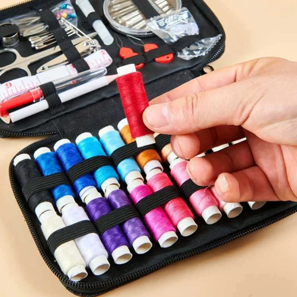 Cet ensemble de boîte à couture est un véritable atout pour tous les amateurs de couture, que ce soit pour des réparations domestiques ou des projets de couture créatifs. Avec 90 pièces dans le lot, il regroupe toutes les petites outils nécessaires pour vos travaux de couture, de tricotage et de réparation.# Atouts clés1. **Complet** : Il contient une grande variété d’outils tels que des aiguilles de différentes tailles, des fils de couleur, des ciseaux, des épingles, etc., répondant à toutes vos besoins en matière de couture.2. **Portable** : Sa taille compacte le rend parfait pour être transporté dans un sac à main. Que vous soyez en voyage ou en déplacement, vous pouvez l’avoir toujours à portée de main pour résoudre rapidement tout problème de couture.3. **Pratique pour le ménage** : À la maison, il est un outil indispensable pour réparer rapidement des vêtements déchirés, ajuster des boutons ou effectuer des petites modifications.