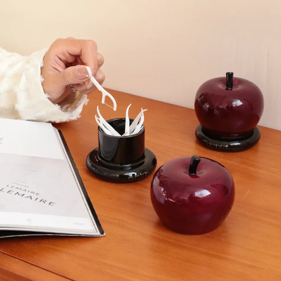 Ce porte cure-dents en forme de pomme rouge est un véritable bijou pour votre décoration intérieure. Ses avantages sont les suivants :1. **Matériaux de haute qualité** : Fabriqué en céramique, avec une excellente durabilité et une finition soignée. La céramique lui donne de la texture et un aspect élégant.2. **Conception originale** : Sa forme est inspirée des pommes rouges, présentant une apparence créative et mignonne. Son design (simple et mignon) le rend unique et attrayant, ajoutant une touche de charme à votre maison.3. **Bonne taille** : 8 cm de largeur et 8 cm de hauteur, suffisamment compact pour être placé sur la table à manger, la console ou toute autre surface sans prendre trop de place.4. **Couleur Charmante** : Le rouge pomme apporte une touche de vitalité et de chaleur à votre décoration. Il est décrit non seulement comme beau, mais aussi comme un symbole de paix et de joie.5. **Multifonction** : Il peut non seulement être utilisé comme porte-cure-dents, mais peut également contenir du fil dentaire. Cette fonction « un pot, plusieurs utilisations » le rend pratique et utile.6. **Facile à tenir** : Sa conception permet de tenir facilement des cure-dents ou du fil dentaire, vous permettant d’obtenir rapidement ces articles nécessaires.Rehaussez la décoration de votre maison avec ce porte-cure-dents en forme de pomme rouge.