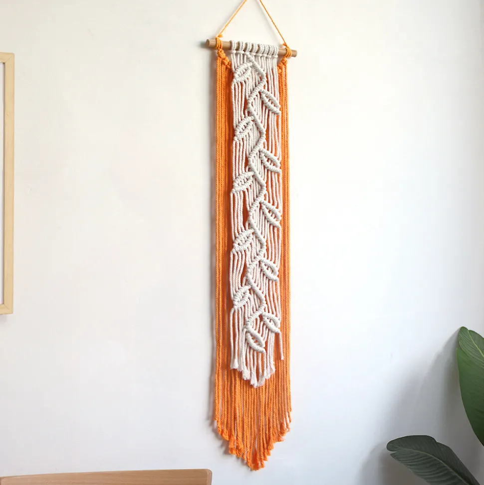 Inspiré du style bohème, pour un toucher artistique et chaleureux dans votre intérieur. Voici les caractéristiques clés de ce produit :1. **Choix de modèles variés** : Nous proposons trois modèles distincts pour répondre à vos goûts personnels. Chaque couleur a ses propres dimensions : orange (20*85 cm), vert (20*100 cm) et bordeaux (20*120 cm). Vous pouvez choisir celui qui convient le mieux à votre espace.2. **Style bohème emblématique** : Le style bohème apporte une atmosphère libre et artistique à votre décoration. Les motifs de feuilles et les franges ajoutent une touche de mouvement et de romantisme, créant une ambiance exotique.3. **Matériau de qualité** : Fabriqué avec des cordages de coton 100% naturels, ce tapis mural offre une qualité supérieure. Le coton est doux, hypo – allergique, antistatique et ne peluche pas. Les couleurs sont uniformes, garantissant une apparence esthétique.4. **Tissage artisanal précis** : Chaque tapis est soigneusement tissé à la main, avec des mailles régulières et un tissage fin. Cette précision confère au tapis une tenue solide et une texture agréable.5. **Applications multiples** : Idéal pour diverses pièces de la maison, telles que le salon, la chambre, le chevet de lit, le balcon. Il peut également être utilisé pour des décorations de mariage. Il apporte une touche exotique à n’importe quel espace de vie.Améliorez votre décoration intérieure avec ce tapis mural bohème et transformez votre espace en un paradis artistique.
