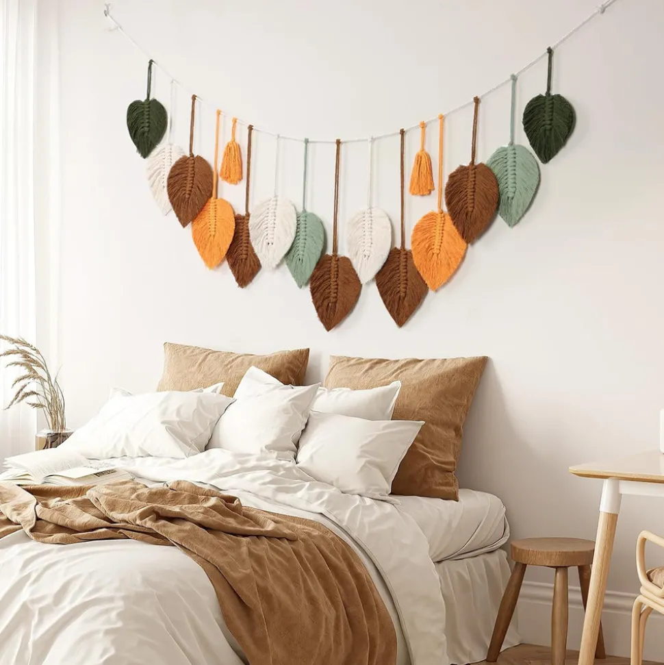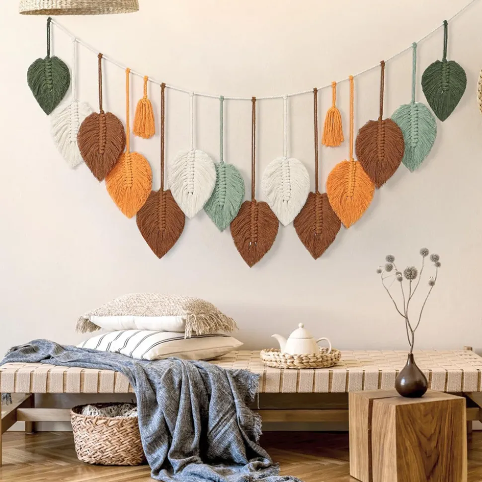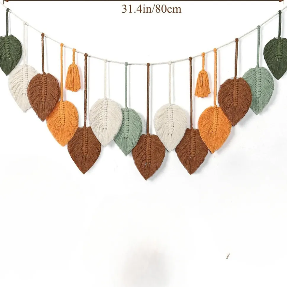 Notre magnifique tapis mural en forme de feuille est une élégance à n’importe quelle pièce. Voici les principales caractéristiques de ce produit :1. **Design innovant** : Conçu sous forme de feuille, ce tapis mural apporte une touche de fraîcheur et de nature à votre décoration intérieure. Il est parfait pour créer une atmosphère relaxante et harmonieuse.2. **Tissage artisanal** : Chaque tapis est soigneusement tissé à la main avec des cordages de coton, ce qui garantit une qualité exceptionnelle et une attention aux détails. Le tissage manuel lui confère une texture unique et une touche authentique.3. **Taille idéale** : Avec des dimensions de 80×38 cm, ce tapis mural est de taille moyenne, ce qui le rend adapté à de nombreux espaces, que ce soit pour embellir un mur de chambre, un salon ou même un coin de bureau.4. **Utilisation polyvalente** : Non seulement il peut être utilisé comme tapis mural, mais il peut également servir de décoration pour les murs de photos. Les franges ajoutent un peu de mouvement et de romantisme, le rendant parfait pour créer une ambiance chaleureuse.Choisissez ce tapis mural en forme de feuille pour apporter une touche de style et de nature à votre maison.