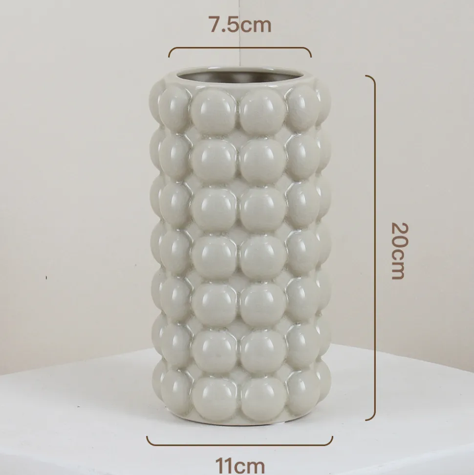 Décoration de table basse : Notre vase en céramique beige est l’élément décoratif idéal pour une maison de style campagnard et apportera une touche de charme à votre salon, salle à manger, chambre, salle de bain, table basse, bibliothèque, cheminée, véranda, etc.Qualité premium : Fabriqué en poterie de la plus haute qualité, ce vase bohème résiste aux températures extrêmes. Les vases à bulles en céramique sont beaucoup plus robustes et plus épais que les vases en verre. Ils sont anti-fuites et résistants à la corrosion, aux fissures et à l’usure.Vases décoratifs : Notre vase moderne, à l’ouverture ronde et au corps allongé, est magnifique associé à des fleurs fines à tiges fines. Pour un style campagnard ou une pièce maîtresse éclatante, optez pour des pivoines.Esthétique moderne : Un bouquet de fleurs dans ce vase bohème égayera votre pièce et apportera style et vie à votre décoration. Ce grand vase s’intégrera parfaitement aux maisons de style campagnard moderne, minimaliste, bohème ou classique.Cadeau idéal : Ce grand vase fait main présente un design élégant et simple, avec une texture détaillée, ce qui en fait un cadeau idéal pour vos amis ou votre famille. Idéal pour les fêtes, la décoration intérieure, les mariages, les pendaisons de crémaillère, Thanksgiving, Noël et la fête des Mères.Doublure imperméable du vase : Nous avons ajouté une nouvelle doublure imperméable à l’intérieur du vase pour résoudre le problème des fuites du vase en céramique. Le vase à bulles est parfait pour les fleurs fraîches et artificielles.
