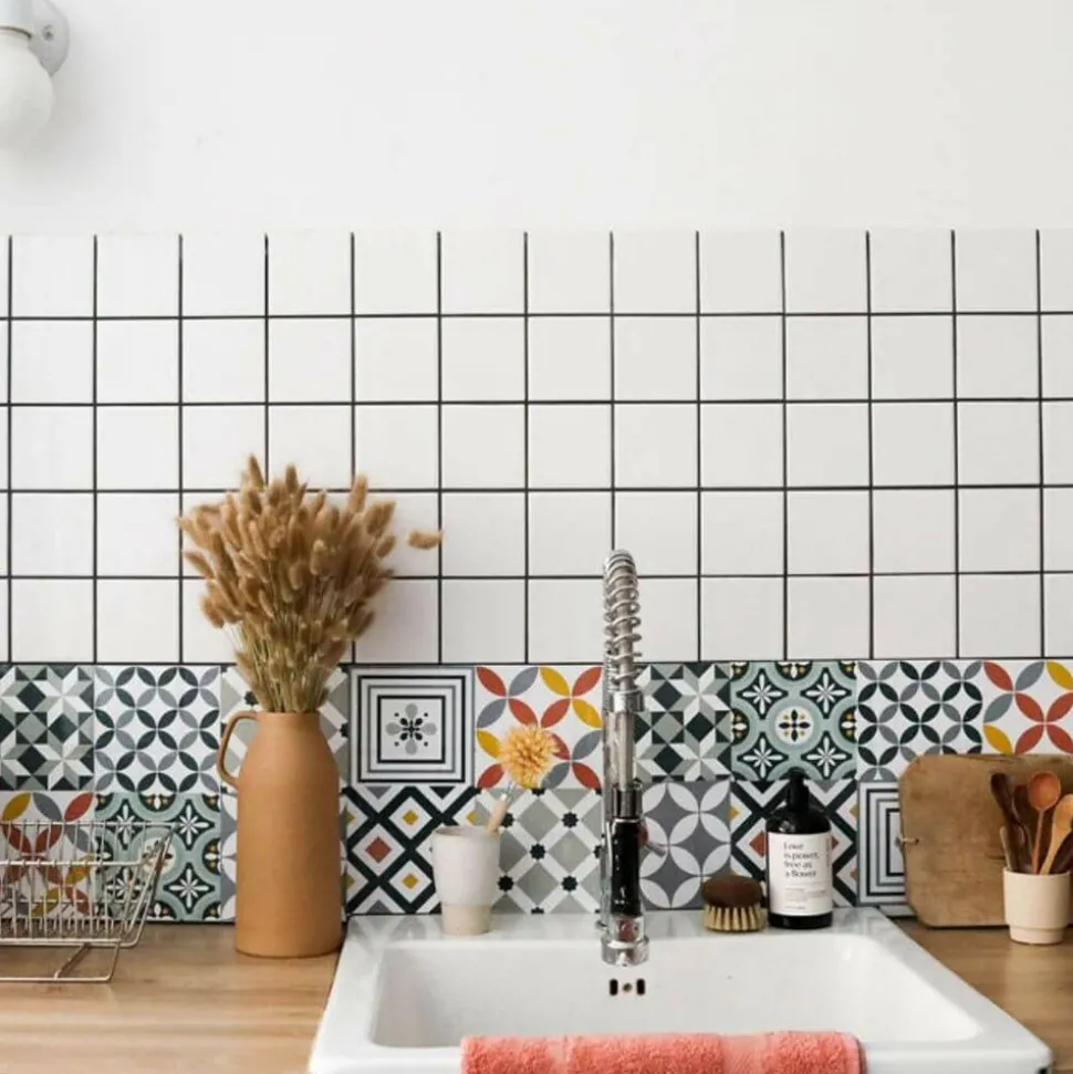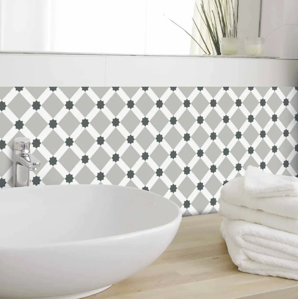 Envie de changer la décoration de votre cuisine ou de votre salle de bain ? Les stickers de carrelage sont la solution qui vous évite les gros travaux. Conçus pour décorer la cuisine ou la salle de bain, les carreaux habillent crédence, tour de lavabo, ou de baignoire…. Contenu : 6 stickers de carrelage motifs carreaux étoilés. Format : 15 x 15 cm. Matière : Vinyle. Dans la boîte: 3 bandes adhésives emballées sous cellophane. Impression en offset UV. Épaisseur: 0,4 cm. Support d’application: murs, carrelages, escaliers, meubles pvc, bois… Ne pas utiliser sur des supports fragiles tel que le papier peint ou le tissu. Non toxique, sans phtalates. Colle résistante à l’humidité, l’eau et aux températures extrêmes. A laver avec une éponge et avec des produits d’entretiens sauf produits agressifs ou abrasifs à base d’acide. Se retire sans abîmer le support. Film brillant (effet faïence) et opaque (ne laisse pas transparaître le support). Durée de vie : 3 ans.