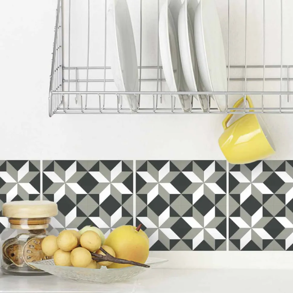 Envie de changer la décoration de votre cuisine ou de votre salle de bain ? Les stickers de carrelage sont la solution qui vous évite les gros travaux. Conçus pour décorer la cuisine ou la salle de bain, les carreaux habillent crédence, tour de lavabo, ou de baignoire…. Contenu : 6 stickers de carrelage motifs étoiles géométriques. Format : 15 x 15 cm. Matière : Vinyle. Superficie couverte totale couverte avec 6 carreaux: L90 x H15 cm. Dans la boîte: 6 carreaux emballés sous cellophane. Impression en offset UV. Épaisseur: 0,4 cm. Support d’application: murs, carrelages, escaliers, meubles pvc, bois… Ne pas utiliser sur des supports fragiles tel que le papier peint ou le tissu. Non toxique, sans phtalates. Colle résistante à l’humidité, l’eau et aux températures extrêmes. A laver avec une éponge et avec des produits d’entretiens sauf produits agressifs ou abrasifs à base d’acide. Se retire sans abîmer le support. Film brillant (effet faïence) et opaque (ne laisse pas transparaître le support). Durée de vie : 3 ans.