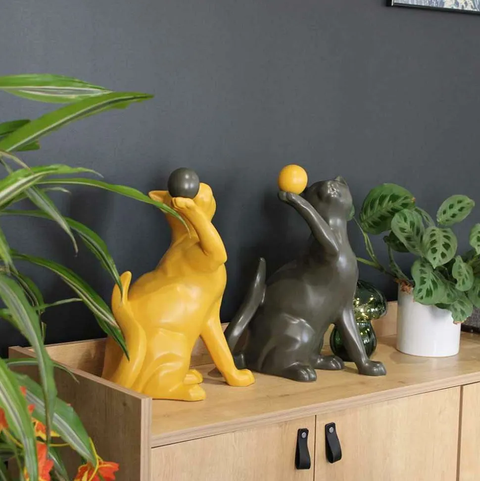 Statuette en céramique chat avec balle Shadow