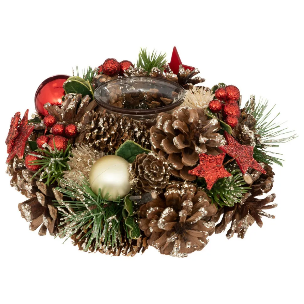 Bougeoir Centre de table en bois décoré Noël & Photophore en verre –