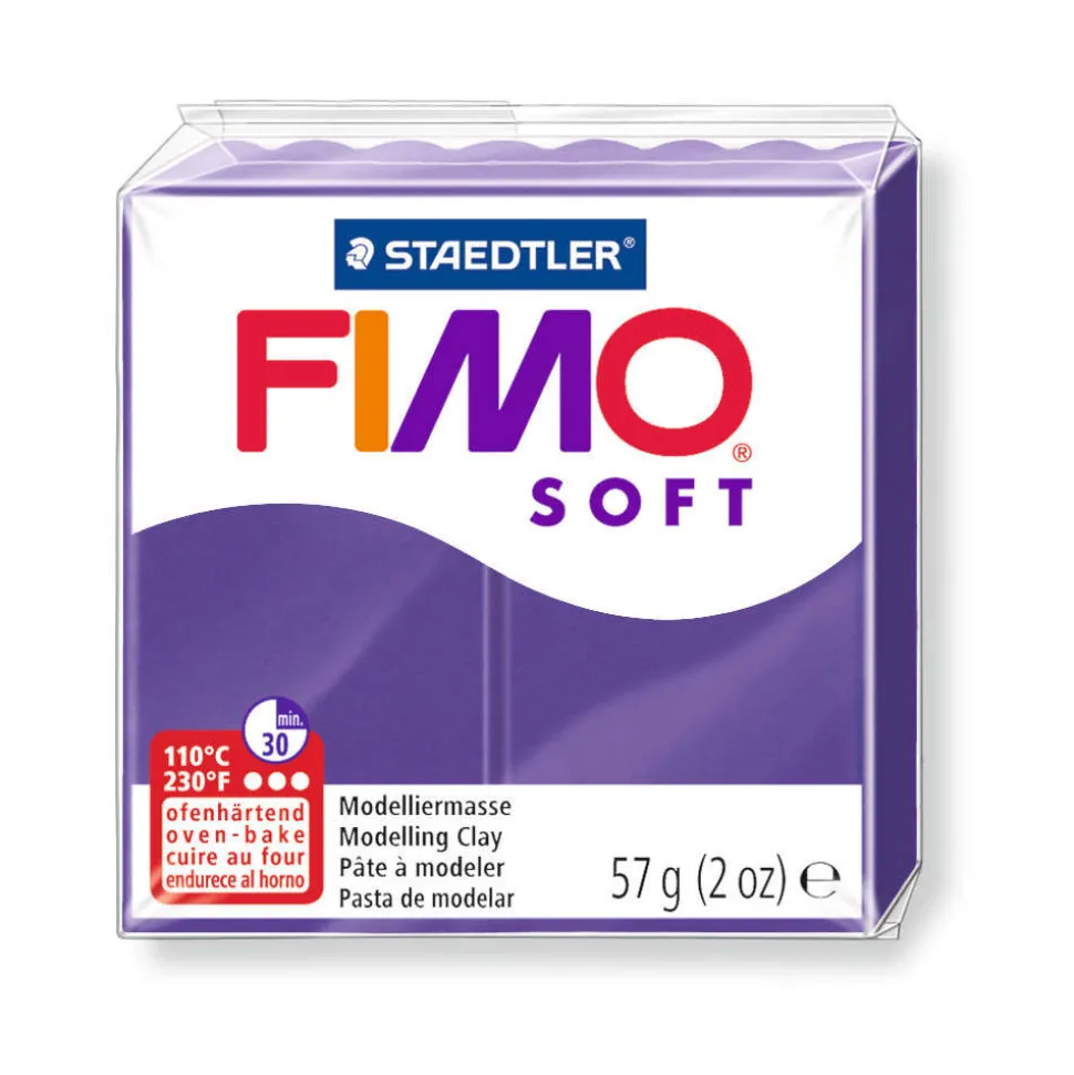 Modelez toutes vos envies créatives avec la pâte Fimo! Cette pâte polymère a tout d’une pâte à modeler, à cela près qu’elle se cuit pour réaliser des objets décoratifs ou des bijoux uniques et inédits! Elle se travaille à la main ou à l’aide des outils de modelage classiques (couteau, spatule, rouleau…), elle se découpe facilement au ciseau et au couteau et très malléable : elle se plie à vos envies sans s’émietter ou se casser. Une fois la réalisation terminée, la pâte Fimo se cuit au four ménager une vingtaine de minutes et se laisse sécher à l’air libre, moment où elle finira de durcir. Les coloris sont miscibles entre eux, ce qui ouvre le champ des possibilités à l’infini. N’attendez plus, passez votre pâte polymère au four! Gamme : Soft. Coloris : parme. Poids : 57g