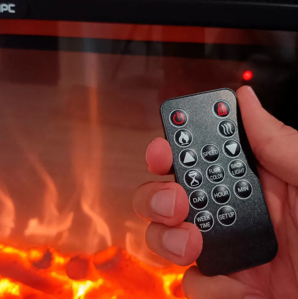 L’installation est simple dans n’importe quel environnement et l’entretien est réduit au fil du temps. La cheminée électrique est livrée avec une télécommande qui permet de gérer toutes les fonctions. Vous pouvez régler les paramètres à l’aide de la télécommande ou directement à partir du panneau avant.