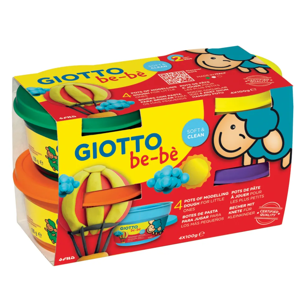 Vos petites têtes blondes prendront plaisir à jouer avec cette pâte à modeler Giotto. Idéale pour développer la dextérité des petits à partir de 2 ans, elle est très malléable et à base d’ingrédients naturels. Vos enfants s’amuseront à réaliser de petits objets qui ne sècheront pas à l’air libre. 4 pots de 100g de couleur violet, jaune, orange et vert.