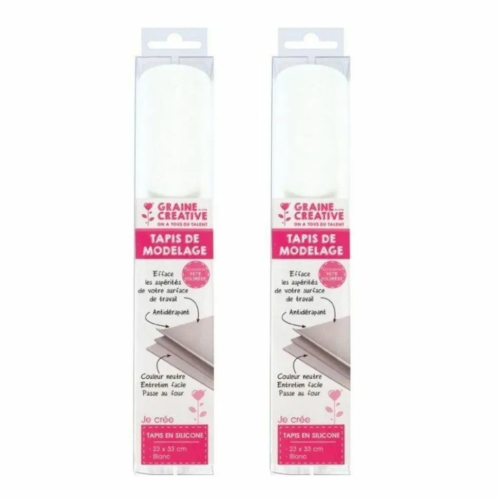 2 tapis en silicone blanc de 23 x 33 cm. Ces tapis en silicone blanc sont spécialement conçus pour vos modelages en pâte polymère. Vous pourrez découper ou former toutes vos créations facilement avec des emporte pièces avec des résultats et des formes bien nettes. Antidérapant, il ne craint pas la chaleur et peut aller au four. Dimensions du tapis de modelage en silicone blanc : 23 x 33 cm. Découvrez également le rouleau pour pâte polymère en inox pour réaliser vos objets de décoration en pâte polymère avec votre tapis de modelage.