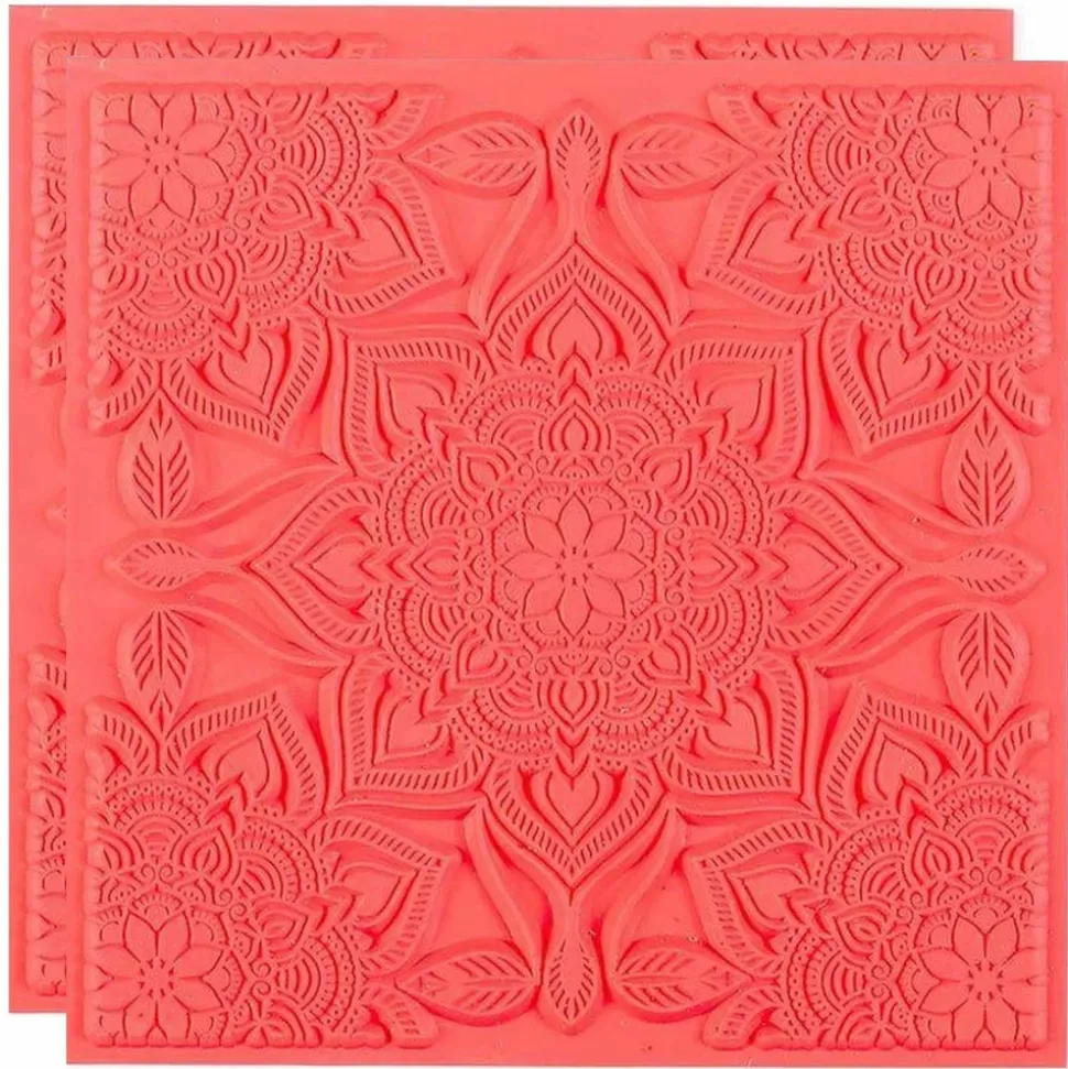 2 tapis de texture pour pâte polymère – Boho chic. Tapis de texture pour pâte polymère boho chic. Ce tapis de texture est parfait pour donner du relief à vos créations en pâte polymère. Il peut être utilisé avec de l’encre, pour réaliser des motifs très fins, ou de la poudre métallisée pour un effet chic. Un pas à pas technique est fourni avec le tapis de texture. Dimensions : 9 x 9 cm.