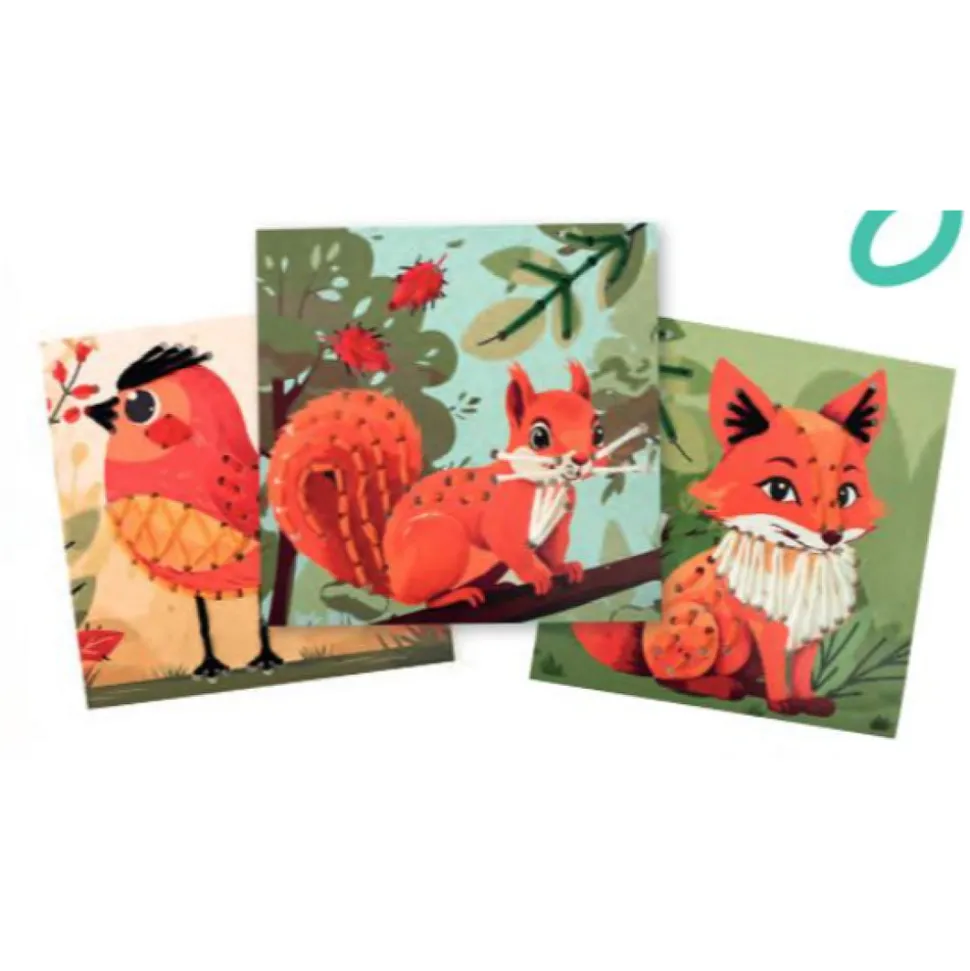 3 cartes a broder sur le theme de la foret