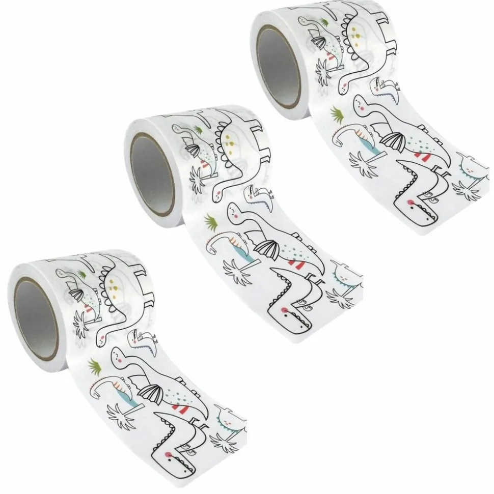 3 masking tapes. Les enfants ont aussi leur touche déco à apporter dans la maison avec ce masking tape large à colorier et ses motifs préhistoriques! En plus de pouvoir le coller où ils le souhaitent, ils pourront lui donner des couleurs avec de simples crayons ou feutres. Pas d’inquiètude, le masking tape est entièrement repositionnable! Ils pourront le coller dans leur cahier, sur le mur de leur chambre, sur des objets de décoration comme des cadres photos. Avec ses dinosaures sympathiques, votre enfant pourra colorier chacun des animaux tout en apprenant un peu d’histoire. Notre astuce déco? Utiliser le masking tape comme frise sur le mur! Dès que votre enfant sera lasser, il suffira d’en changer en quelques coups de feutres! Le rouleau de masking tape mesure 4,6 cm x 5 m.