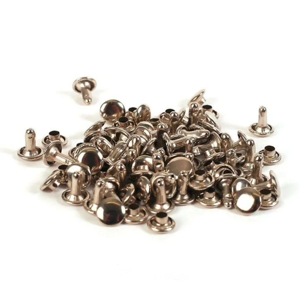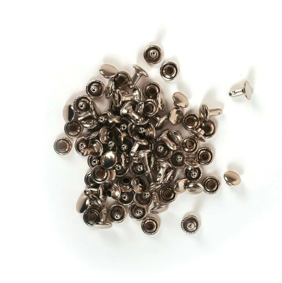 Rivets doubles avec effet cuir, idéal pour les tissus épais ou le cuir, mais aussi pour la pâte polymère. Dimensions : 6 et 8 mm.