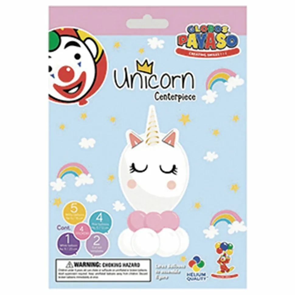Fabriquez un centre de table licorne grâce à ces 9 ballons pour réaliser le totem+ un ballon de 23 cm pour la tête. Des stickers sont inclus pour décorer le visage de la licorne. L’usage d’une pompe à gonfler est recommandée. Le ballon une fois gonflé mesure environ 60 cm. Idéal pour décorer une fête d’anniversaire sur le thème des licornes !