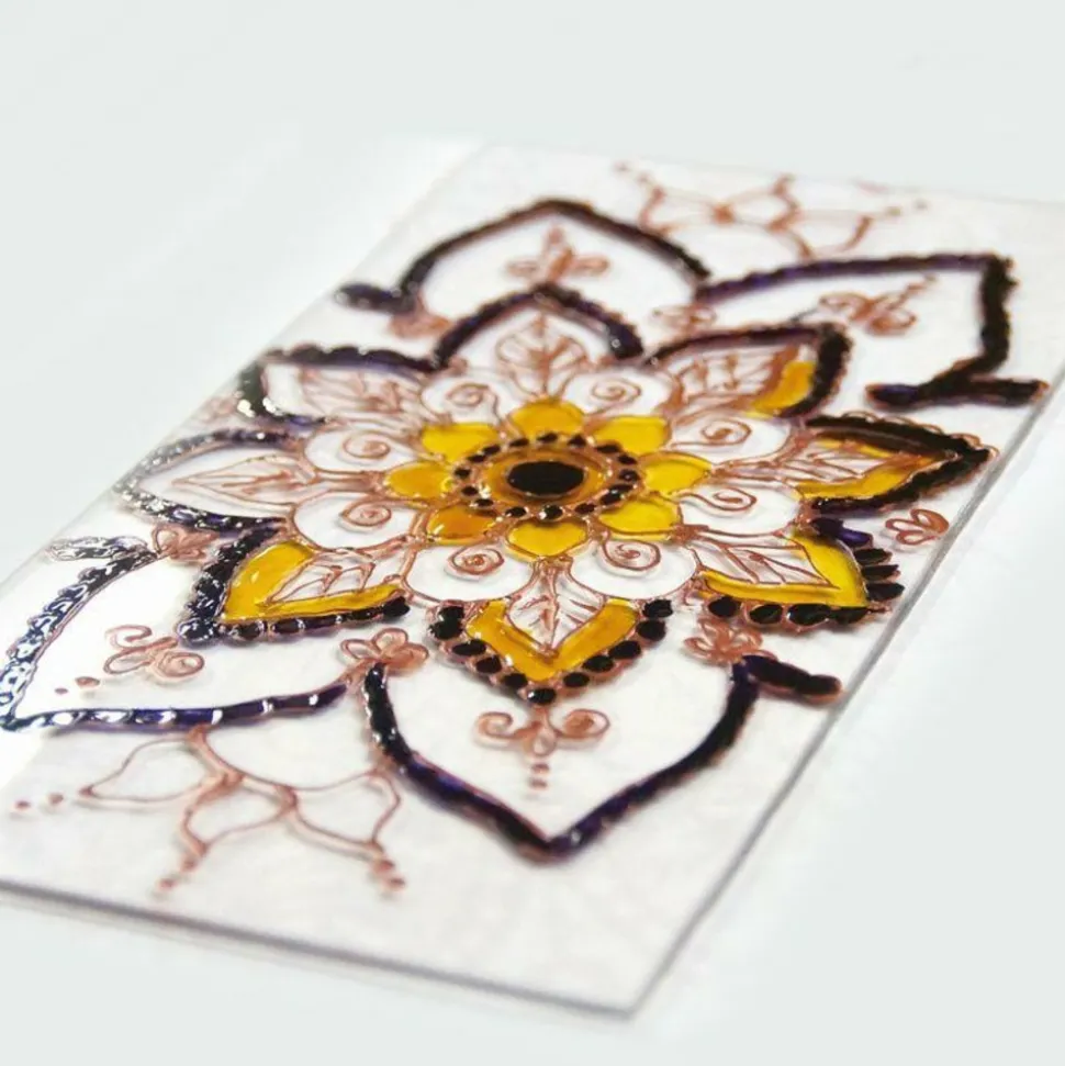 Avec le cerne, dessinez les contours de vos dessins puis remplissez-les de peinture pour verre. Le cerne permet d’avoir des dessins mieux délimités. Couleur : noir. Contenance : 20 ml.