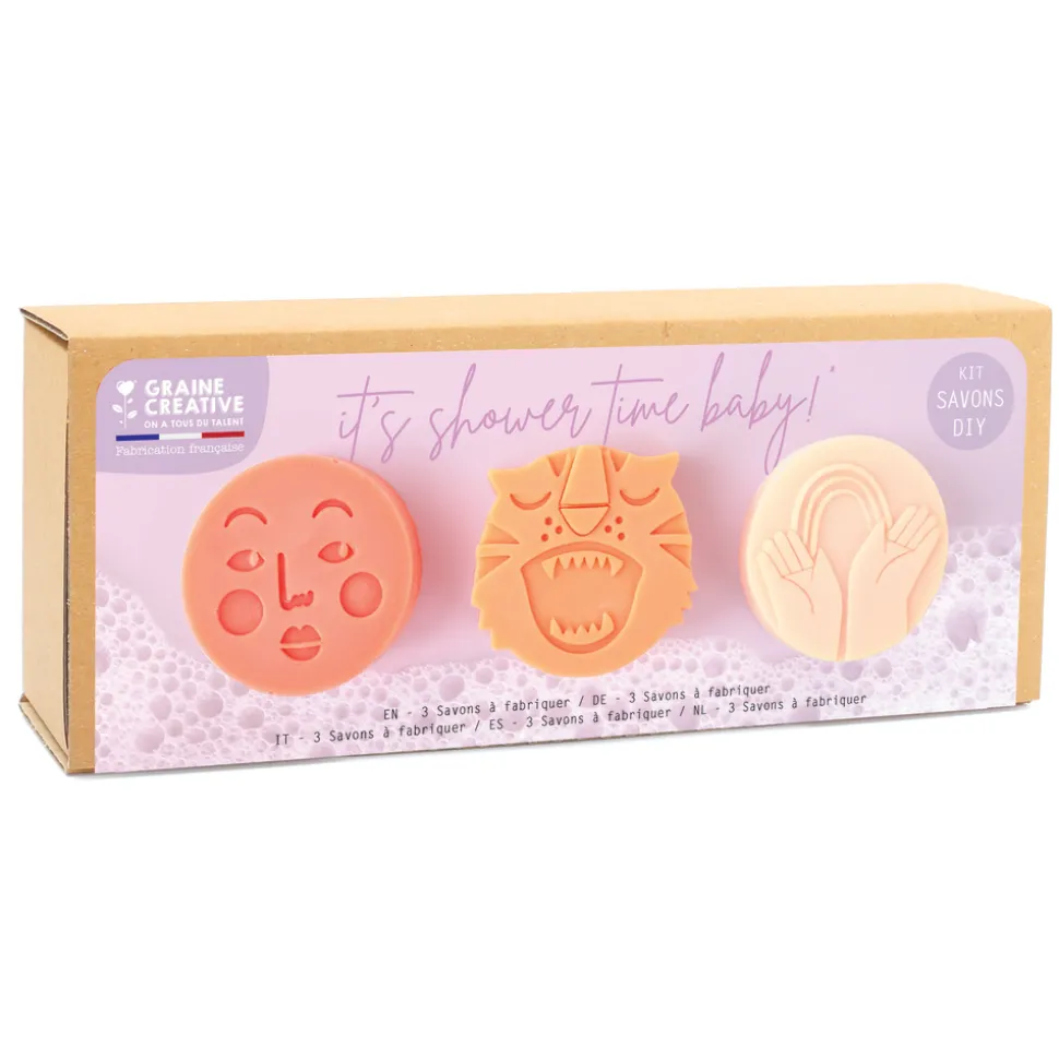 Vous trouverez dans ce kit tout le nécessaire à la réalisation de ces 3 jolis savons naturels enjoués DIY de la marque Graine Créative. Réaliser soi-même des objets ou des produits de son quotidien est particulièrement gratifiant. C’est aussi l’occasion de partager en famille ou entre amis des moments de partage et de détente privilégiés. Il ne vous restera ensuite plus qu’à profiter du délicieux sentiments de plenitude et de la joie que vous ressentirez sous votre douche en utilisant vos propres savons fabriqués avec amour. Le bien-être et le bonheur à la maison relèvent d’une somme de petits détails simples et faciles à réaliser. Kit DIY en boîte Shower time Joy pour réaliser 3 savons.