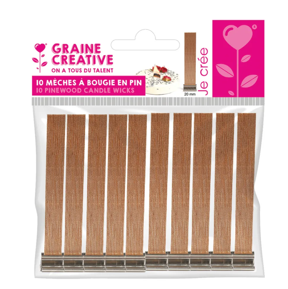 Lot de 10 mèches pour bougie en pin avec socle en métal, indispensables pour réaliser vous-même vos propres bougies et apporter une ambiance chaleureuse!