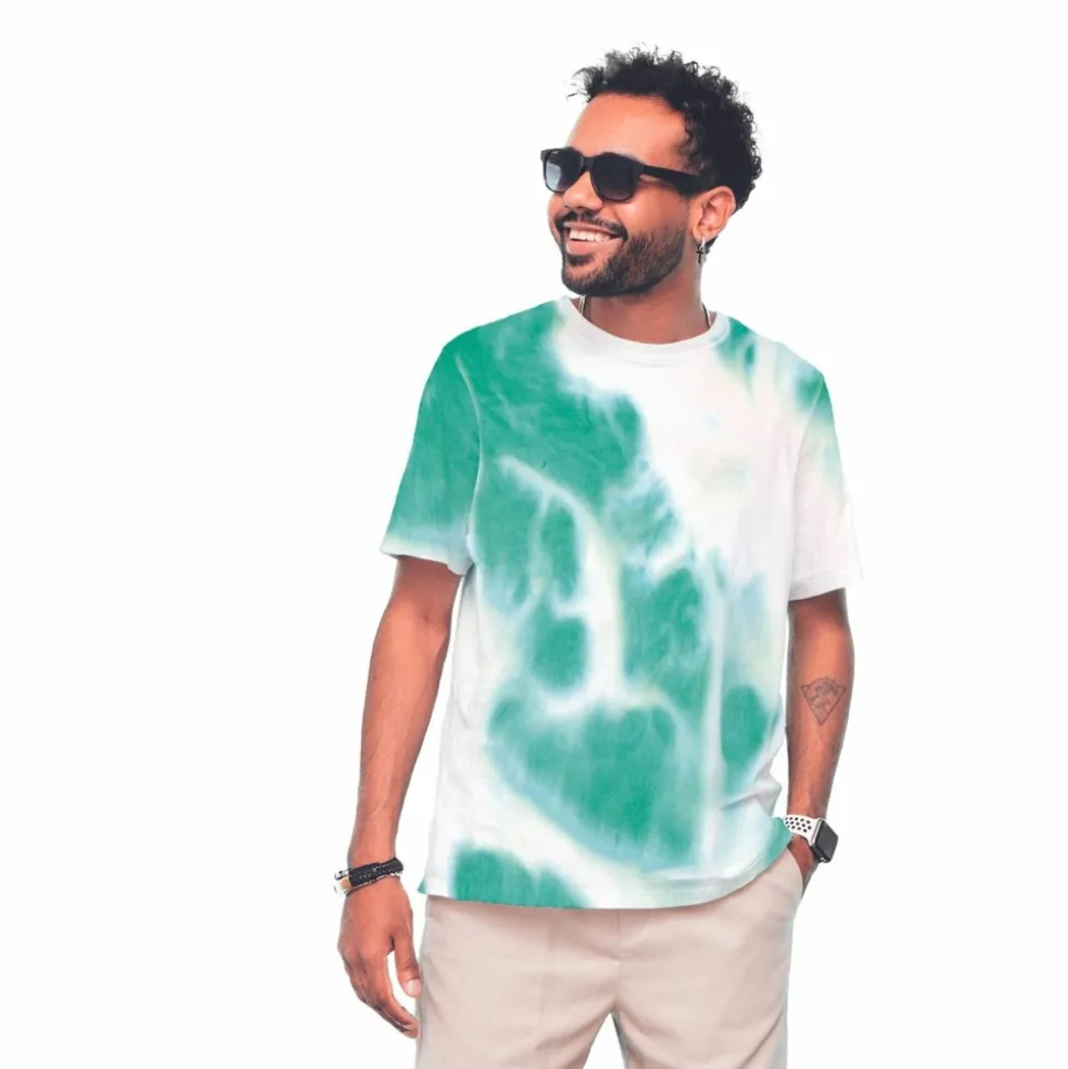 Ajoutez une touche artistique à vos vêtements avec notre pot de peinture textile bleu turquoise de 100 ml pour créer des effet tie and die. Idéale pour les débutants et les experts, cette peinture offre une excellente opacité et adhère durablement aux tissus. Créez des effets tie and die uniques et laissez libre cours à votre créativité. Pour cela rien de plus simple il vous suffit de : 1) froisser votre tissu 2) le nouer 3) ajouter la teinture sur le tissu 4) fixer la couleur à l’aide d’un fer à repasser. Cette teinture permet de teindre les fibres naturelles ( coton, lin etc…) et est lavable en machine jusqu’à 40 degrès.