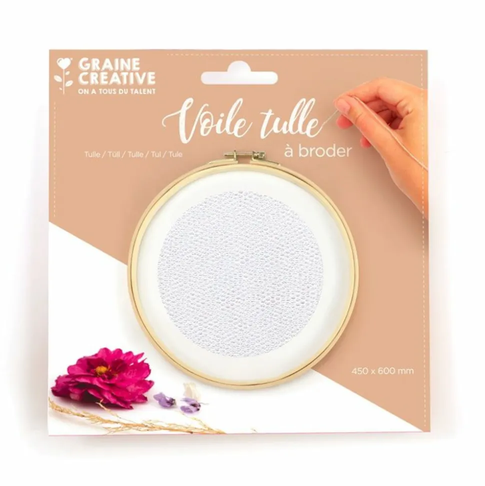 Ce voile de tulle vous permettra de broder tout ce que vous souhaitez (des fleurs, des animaux, des messages窶également l’utiliser comme support de décoration où coller quelques objets : plumes, fleurs, coquillages… Alors laissez libre cours à votre imagination et votre créativité ! Dimensions du voile de tulle : 60 x 45 cm