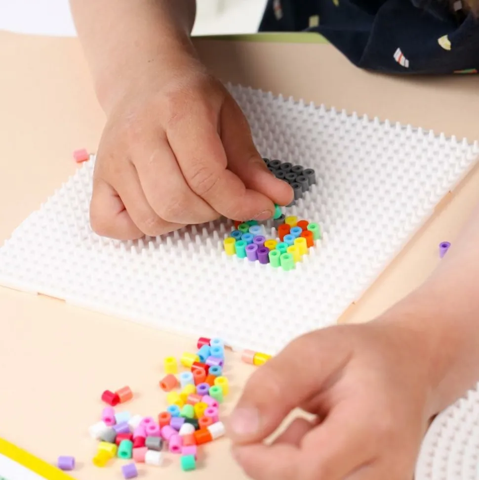 Une grande plaque carrée blanche pour vous aider à créer vos plus belles réalisations en perles HAMA Midi. Assemblez la plaque à l’aide de son crantage pour former une grande surface de création. (Nombre de picots : 841) perles vendus séparement Les jeux Hama sont pensés pour le développement intellectuel et moteur des enfants. Au cours des premières années de vie, les petits apprennent à reconnaître les couleurs, à saisir les objets, à distinguer les formes, à avoir une première idée des quantités, etc. C’est en relation avec ces années d’apprentissage que les produits Hama montrent leur force en tant que jouets pédagogiques. Guidés par leurs parents, les enfants s’amuseront à prendre confiance en eux. Des activités qui développent le partage, la dextérité et qui stimulent la curiosité ! Adapté pour les enfants de plus de 5 ans.