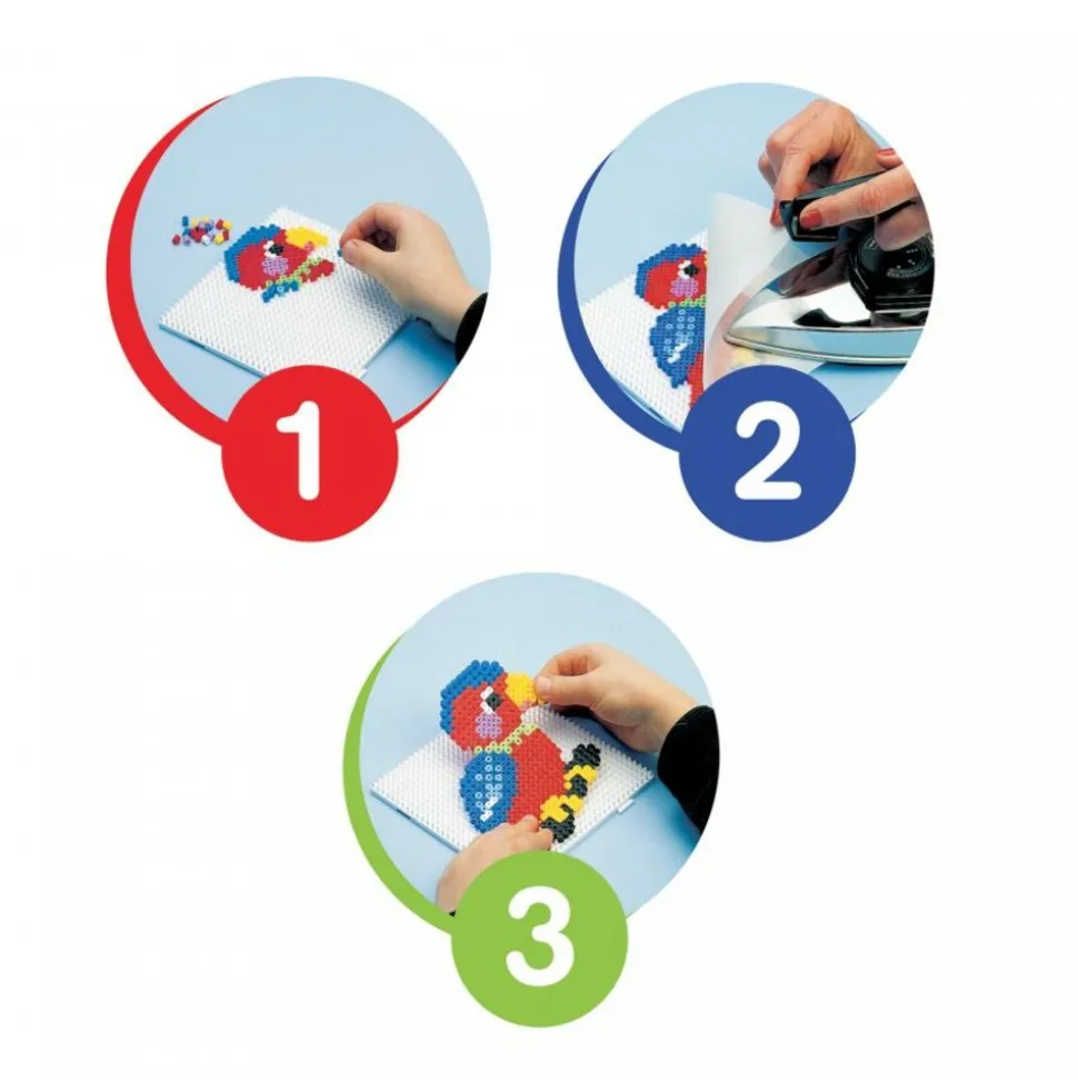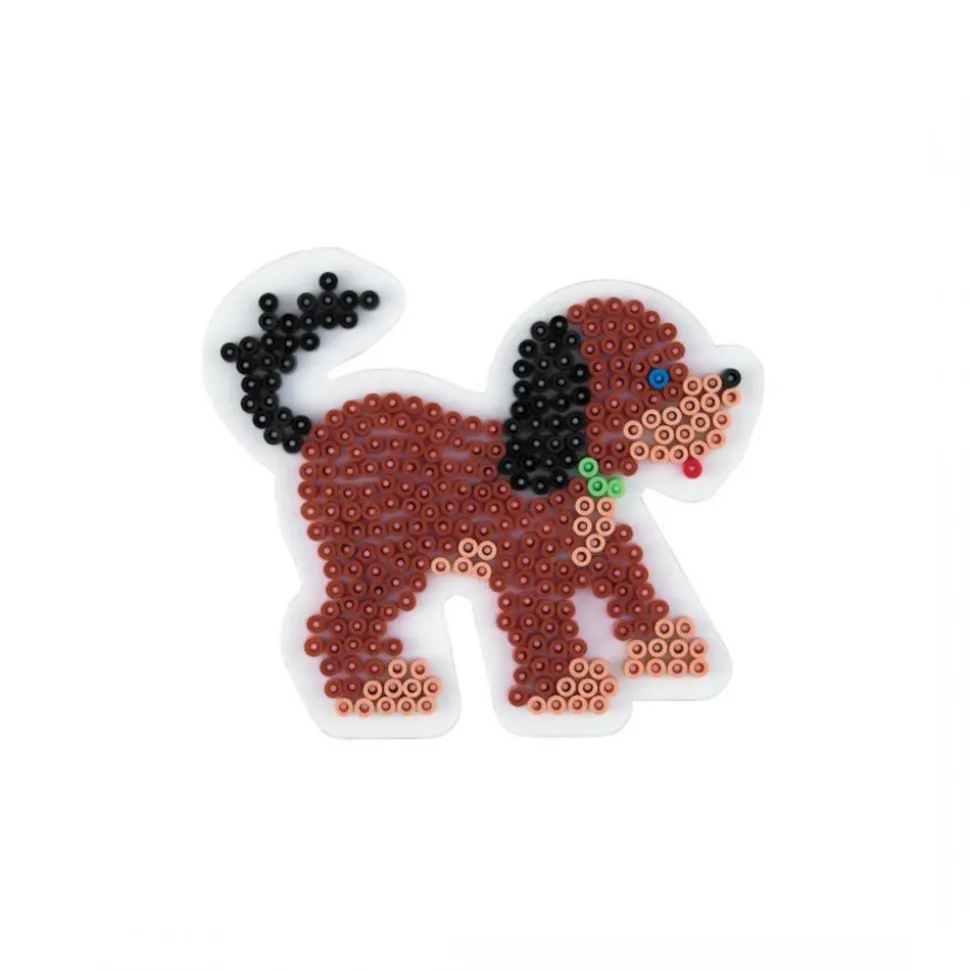 Une plaque «Chien» pour vous aider à créer vos plus belles réalisations en perles HAMA Midi. (Nombre de picots : 311). Pour jouer, rien de plus simple : 1) Poser les perles sur la plaque. 2) Couvrir le motif avec le papier à repasser puis repasser au fer très chaud sans vapeur. Le repassage est laissé aux soins des adultes. 3) Enlever le motif obtenu de la plaque de base qui est réutilisable. Les jeux Hama sont pensés pour le développement intellectuel et moteur des enfants. Au cours des premières années de vie, les petits apprennent à reconnaître les couleurs, à saisir les objets, à distinguer les formes, à avoir une première idée des quantités, etc. C’est en relation avec ces années d’apprentissage que les produits Hama montrent leur force en tant que jouets pédagogiques. Guidés par leurs parents, les enfants s’amuseront à prendre confiance en eux. Des activités qui développent le partage, la dextérité et qui stimulent la curiosité ! Adapté pour les enfants de plus de 5 ans.