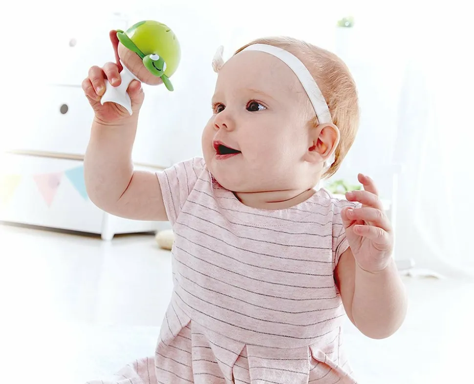 Set de hochets animaux marins, un jouet d’éveil en bois et plastique de la marque Hape.
