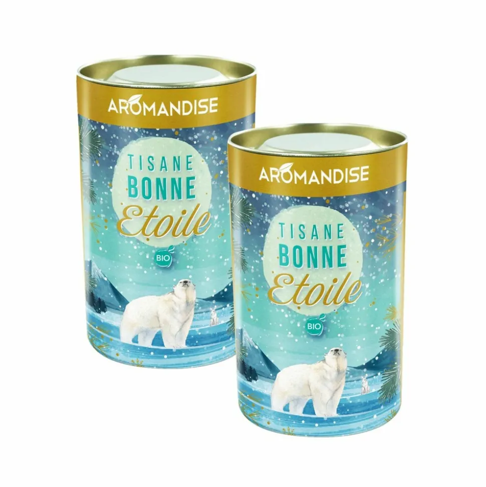 Cette bonne étoile vous guide et vous protège. Le gingembre, la coriandre, la réglisse et la cardamome, contribuent au maintien des défenses de l’organisme et soutiennent le système immunitaire. Ces plantes permettent de lutter contre les refroidissements. Ingrédients : gingembre*(30%), cannelle*, fenouil*, coriandre*(10%), zeste d’orane*, réglisse* (8%), galanga*, cardamome* (3%), romarin*, muscade*, anis*. 2 boîtes de 100 g net.
