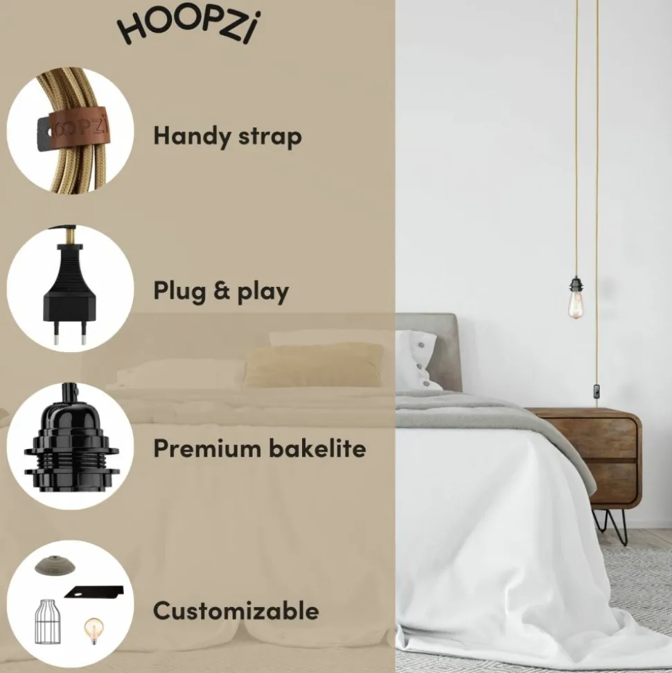Le luminaire en cordon tissu Bala de Hoopzï est idéal pour personnaliser votre décoration. Flexible et résistant, il peut être installé selon vos envies : enroulé autour d’une structure, suspendu à un crochet mural ou agrémenté d’un abat-jour. Son câble de 4,5 m permet une grande liberté d’utilisation, que ce soit pour mettre en valeur une ampoule Edison ou créer une ambiance unique dans n’importe quelle pièce.