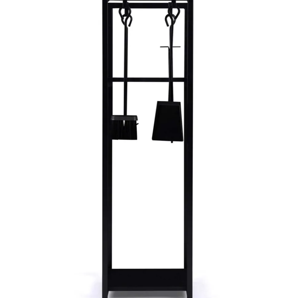 Le froid et l’hiver approchant, la saison réconfortante des feux de cheminée arrive à grands pas. Vous allez bientôt pouvoir vous relaxer en regardant les flammes de votre poêle ou de votre cheminée confortablement installé dans votre salon. Pour vous éviter d’innombrables allers-retours vers votre tas de bûches à l’extérieur et dans le froid pour alimenter votre feu, pensez au range-bûches vertical d’intérieur maxi capacité de 112 cm ! En plus de faciliter votre quotidien, l’étagère range bûches pour cheminée est très esthétique. Son design épuré et moderne s’adaptera facilement avec votre intérieur et vous permettra de stocker votre bois de manière élégante. Privilégiez l’entreposage de vos grosses bûches dans le bas de la structure et placez votre petit bois de démarrage ou vos buchettes sur l’étagère de la partie haute.Le range-bûches est construit avec un matériau robuste, pour vous permettre d’entreposer le bois jusqu’en haut de sa structure sans crainte. Afin de ne pas salir votre revêtement de sol, l’étagère dispose d’un plateau de 33 x 33 cm surélevé à 6 cm du sol. Cela vous permet de stocker votre bois de chauffage ou vos briquettes sans abîmer votre sol. Le range bûches est muni de 4 accessoires idéaux pour attiser les flammes de votre feu ainsi que pour nettoyer votre cheminée.Une fois votre feu démarré, vous pouvez utiliser la pince pour replacer tranquillement les bûches dans votre feu sans vous approcher des flammes. Le tisonnier vous aide quant à lui à attiser votre feu pour une durée de vie prolongée. Une fois la flambée éteinte, utilisez la pelle et le balai de votre ensemble pour enlever le surplus de cendre de votre flambée. Optimisez votre rangement grâce aux 4 crochets intégrés au range bûches ! Vous pourrez ainsi suspendre ces 4 accessoires de cheminée et les conserver à portée de main sans les laisser traîner au sol ! Son assemblage est simple et rapide, et ses 4 accessoires vous permettront d’entretenir votre feu comme vous le souhaitez. Profitez de ce joli range bûches à petit prix !Dimensions du range bûches vertical acier noir avec accessoiresDimensions globales : Longueur 112 cm x largeur 33 cm x Hauteur 33 cm Hauteur de l’étagère supérieure : 82 cm Hauteur entre le sol et l’étagère inférieure : 6 cm Largeur des étagères : 29 cmMatériaux : Acier, épaisseur 2 cm / Panneaux de particules de bois (PB), épaisseur 1,5 cm 4 accessoires inclus – Balai : 48 x 10 cm – Pelle : 49 x 11 cm – Pince : 52 cm – Tisonnier : 50 cmVisserie incluseÀ monter soi-mêmeRetrouvez l’ensemble de nos range-bûches sur notre boutique en ligne !