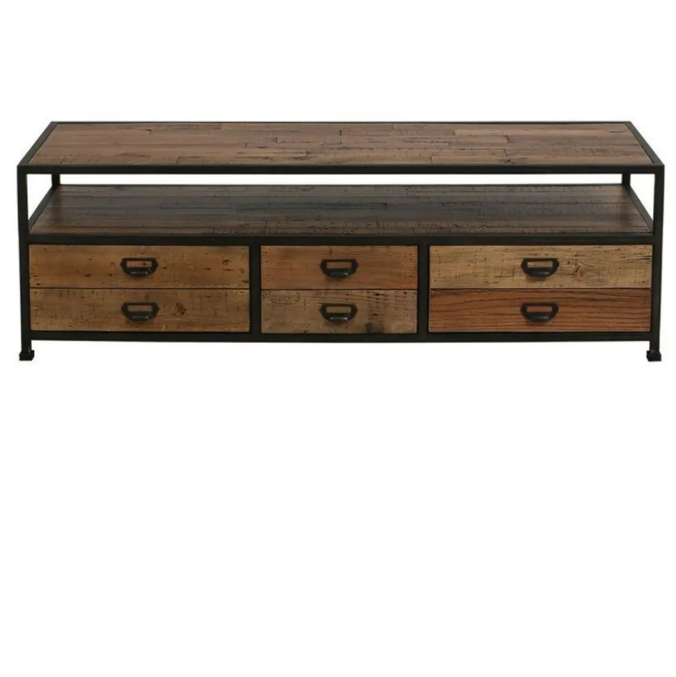 Certifié Qualité Interior’sFabriqué à la main par nos artisans-menuisiersMatériaux : Bois recyclé (pin et sapin principalement)Meuble assemblé en un seul tenantAssemblage artisanal façon marqueteriePatine artisanale composée dans nos ateliers
