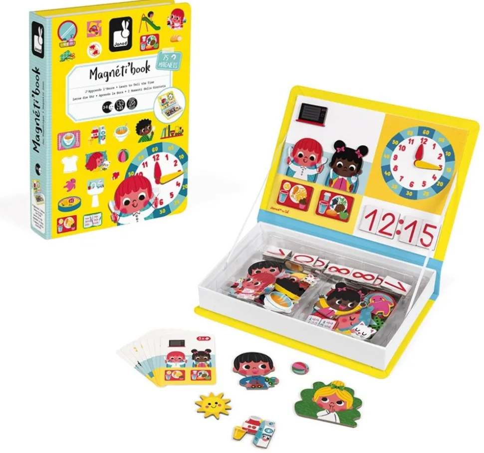 Magnéti’book J’apprends l’heure, un jeu éducatif magnétique de la marque Janod. Référence J02724.