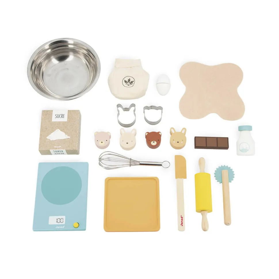 Mon atelier Pâtisserie, un jeu d’imitation de la marque Janod. Référence J06618.