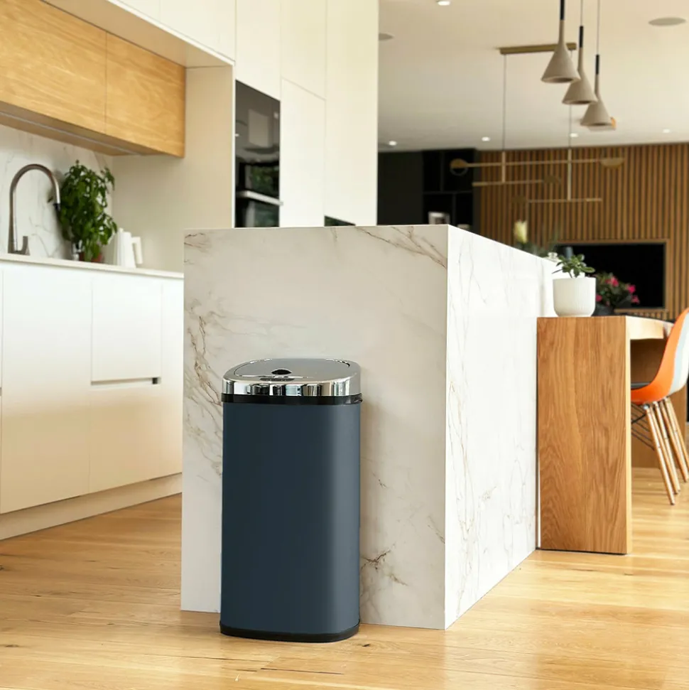 Poubelle de cuisine automatique rectangulaire avec cerclage Capacité 42L modèle LARGO en acier Inoxydable. Couleur Grey Mat. Dimension: 32x25xH64cm Poids:2.7kg.Cette poubelle de la gamme LARGO a tout pour plaire. Nul besoin de la cacher dans un coin : faites-en ainsi un élément à part entière de votre déco. Idéal pour la cuisine, la salle de bains, le bureau mais aussi tout autre endroit de passage où vous avez besoin d’une poubelle. Nouveau Design. Poubelle avec couvercle à ouverture automatique mains libres et look moderne et élégant.Corps en INOX (0.4mm) et couvercle en ABS. Fonctionne avec 4 piles LR06 (non fournies). Inclus: Un cerclage plastique pour maintenir votre sac poubelle, et un anneau au sol pour la protection des sols fragiles.Poubelle intelligente qui fonctionne avec un système infra-rouge et vous évite ainsi tout contact avec le couvercle de la poubelle de cuisine automatique 42L. Pratique et hygiénique, le couvercle s’ouvre et se referme automatiquement lorsque vous passez votre main ou un objet à 15 cm au-dessus de la cellule photo électrique. Modèle léger et résistant aux taches et aux traces de doigts. Réduit donc la prolifération bactérienne et prévient la diffusion des odeursPossibilité de maintenir le couvercle ouvert grâce aux boutons OPEN / CLOSE (pour une ouverture prolongée). Ses matériaux lisses (fer non-corrosif INOX fin et ABS) facilitent son entretien. Plus qu’une poubelle, un meuble design. Il n’est pas utile de se baisser pour jeter ses déchets. Poubelle Stable. Base antidérapante. Fermeture silencieuse et Anti-Traces de Doigts. Fermeture anti-odeurs.
