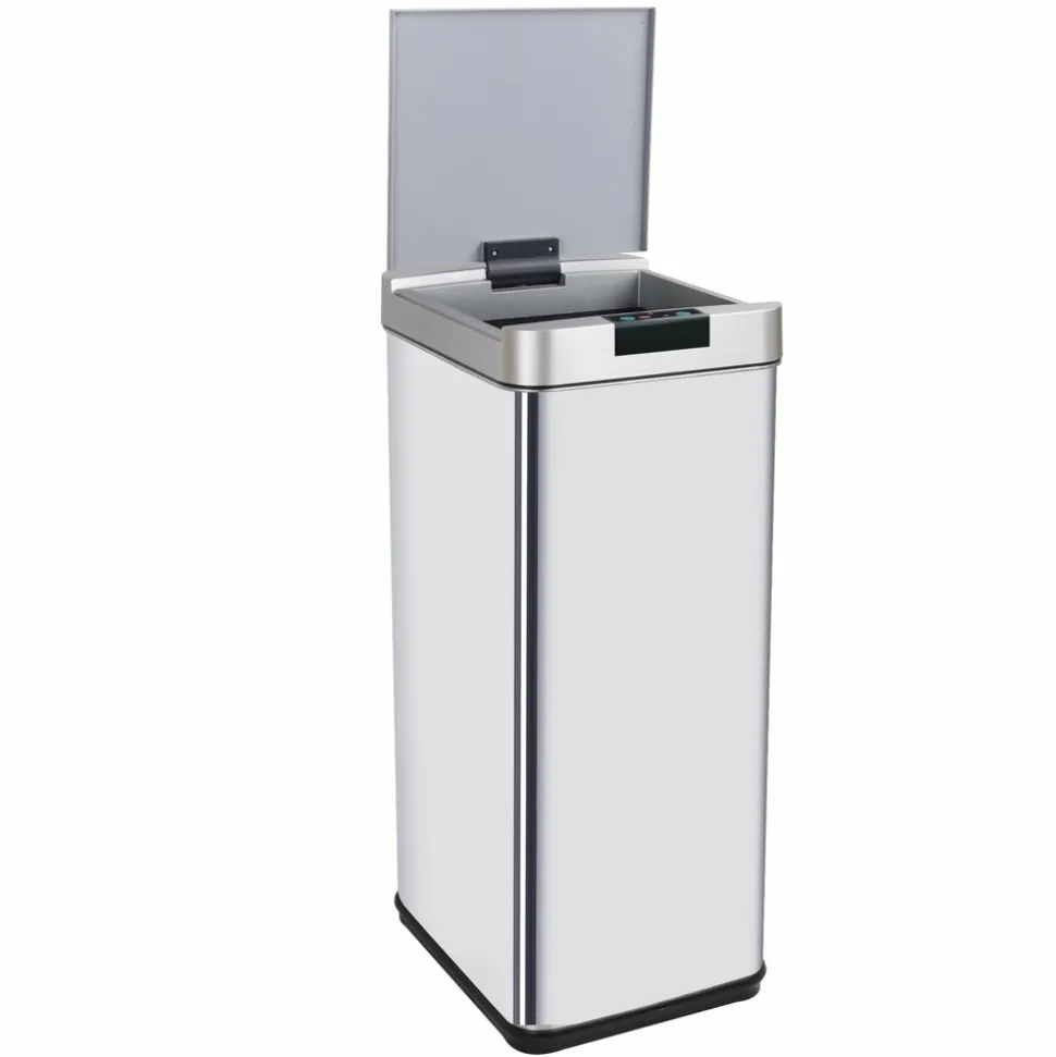 Poubelle de cuisine automatique rectangulaire avec cerclage Capacité 50L modèle PARKSIDE en acier Inoxydable Finition Inox brossé Dimension: 32x27xH64cm Poids:4kgNouveau modèle. Cette poubelle de la gamme PARKSIDE a tout pour plaire. Nul besoin de la cacher dans un coin : faites-en un élément à part entière de votre déco. Idéal pour la cuisine, la salle de bains, le bureau et tout autre endroit de passage où vous avez besoin d’une poubelle. Nouveau Design.Poubelle avec couvercle à ouverture automatique mains libres et look moderne et élégantCorps en INOX (0.4mm) et couvercle en ABS. Fonctionne avec 4 piles LR06 (non fournies). Possibilité de brancher le produit sur une prise secteur (en achetant l’adaptateur en option) Inclus: Un cerclage plastique pour maintenir votre sac poubelle, et un anneau au sol pour la protection des sols fragiles.Poubelle intelligente qui fonctionne avec un système infra-rouge et vous évite tout contact avec le couvercle de la poubelle. Pratique et hygiénique, le couvercle s’ouvre et se referme automatiquement lorsque vous passez votre main ou un objet à 15 cm au-dessus de la cellule photo électrique. Modèle solide, léger et résistant aux taches et aux traces de doigts. Réduit la prolifération bactérienne et prévient la diffusion des odeurs. Plus qu’une poubelle, un meuble design. Il n’est pas utile de se baisser pour jeter ses déchets. Poubelle Stable. Base antidérapante. Fermeture silencieuse et Anti-Traces de Doigts. Fermeture anti-odeurs. Ses matériaux lisses (fer non-corrosif INOX fin et ABS) facilitent son entretien.