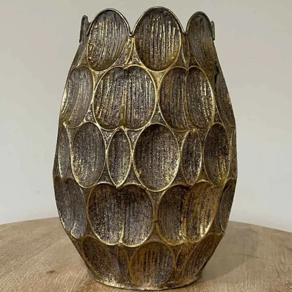 Apportez une touche d’élégance et de modernité à votre espace extérieur avec ce magnifique vase en acier, agrémenté de pétales dorés. Sa hauteur de 76 cm en fait une pièce maîtresse parfaite pour tout environnement. Que ce soit à l’extérieur sur une terrasse entourée de meubles modernes pour une ambiance sophistiquée, ou comme élément central sur un patio illuminé de lanternes et de bougies, créant ainsi une atmosphère chaleureuse et élégante.