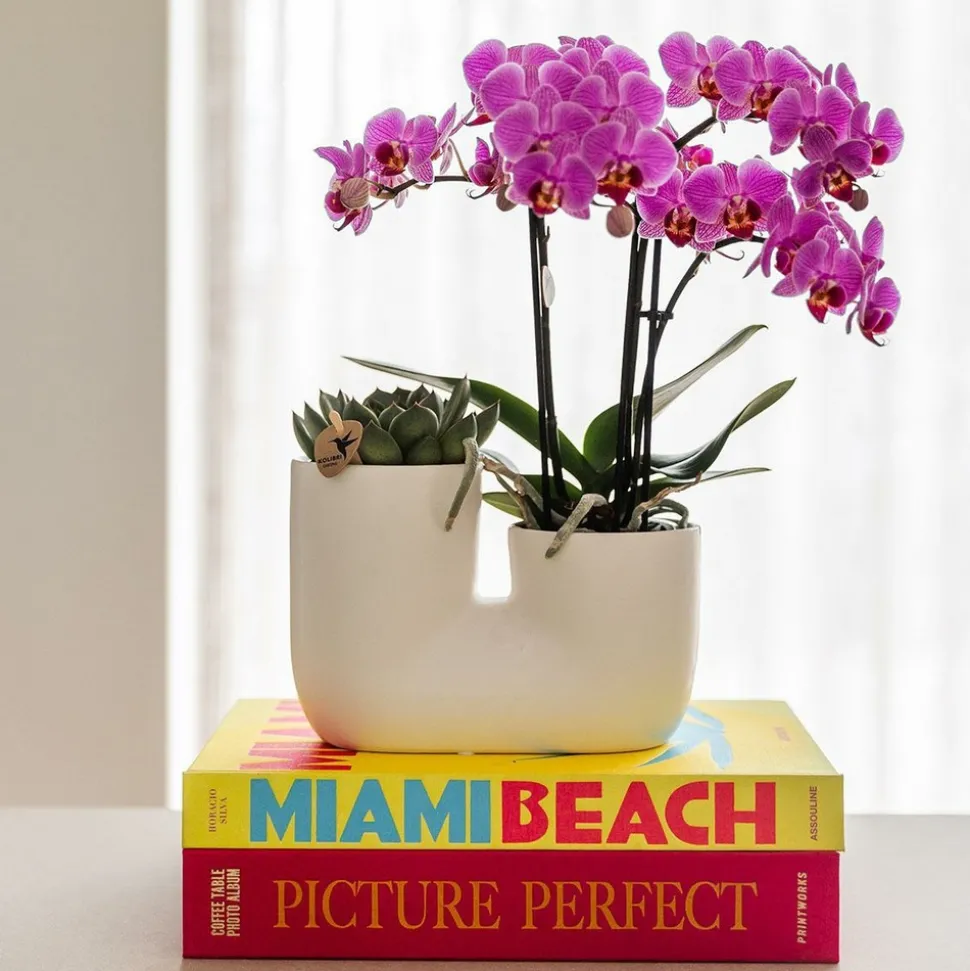 Découvrez ce duo élégant de pots pour deux plantes de 9 cm. Parfait pour associer une orchidée et une succulente, chaque pot tubulaire est conçu en céramique robuste et disponible en trois couleurs : noir, blanc et brun. Choisissez votre teinte préférée et sublimez l’ensemble avec une orchidée et une succulente.