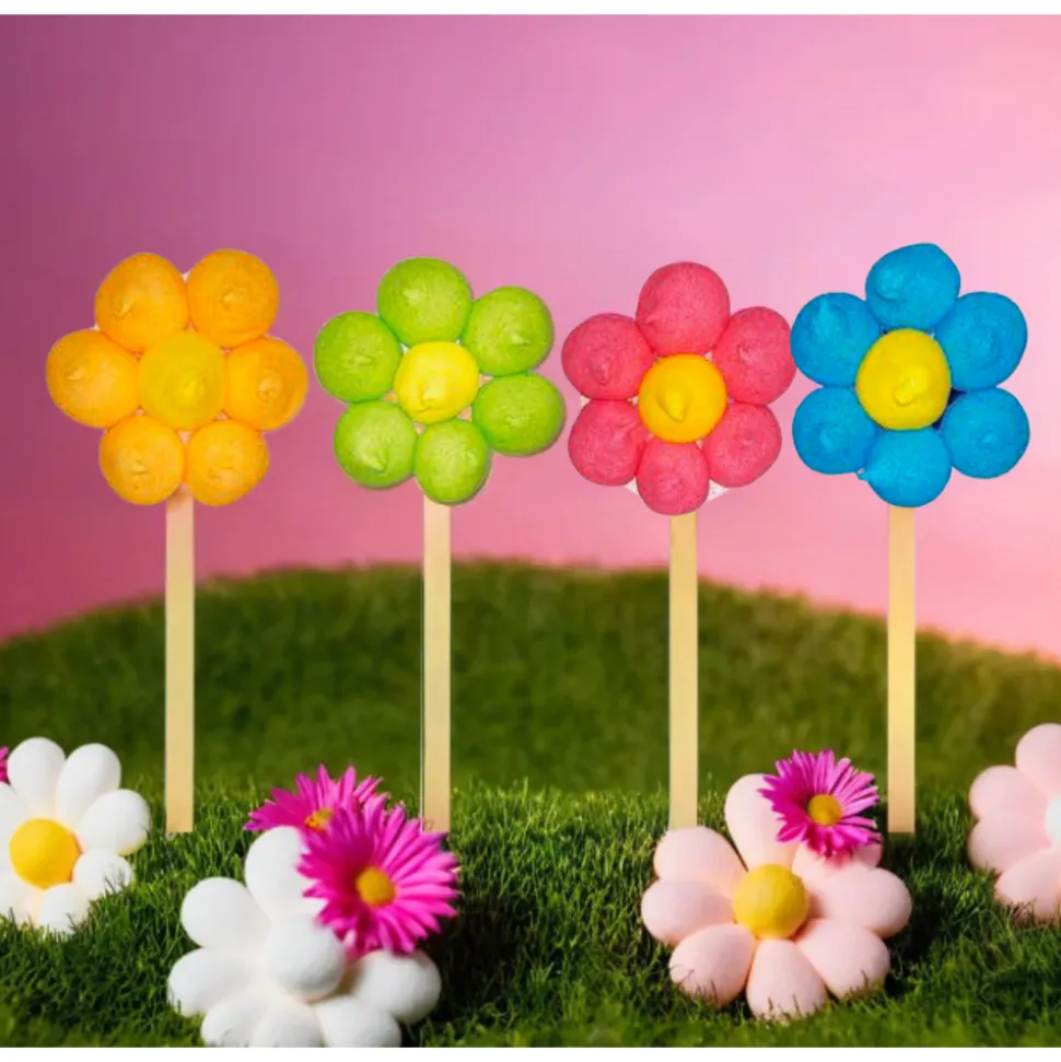 Et si, le temps d’une gourmandise, vous retombiez en enfance ? Savourez cette délicieuse brochette de guimauve en forme de fleur. Vendue à l’unité, vous recevrez le modèle disponible en stock au moment de la préparation de votre commande. Brochette guimauve en forme de fleur, vendue à l’unité – 65g.