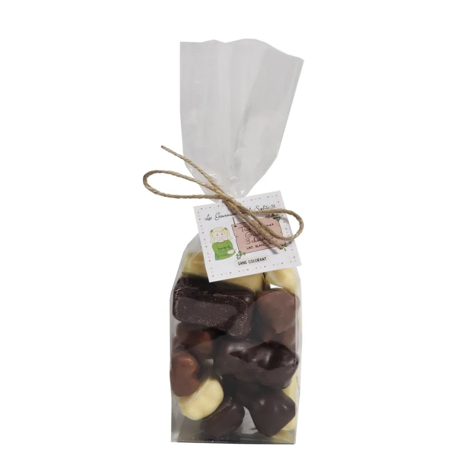 À offrir aux gourmands de tous âges, ce sachet de 150 g d’oursons en guimauve 3 chocolats est fabriqué dans le Nord de la France par Les Gourmandises de Sophie. Pour cette recette fondante et régressive, le célèbre ourson en guimauve est revisité en petit format et bénéficie de 3 enrobages différents : chocolat noir, chocolat au lait et chocolat blanc. Ces oursons en guimauve aux 3 chocolats peuvent être proposés en accompagnement d’un café, d’un thé ou d’un chocolat chaud.