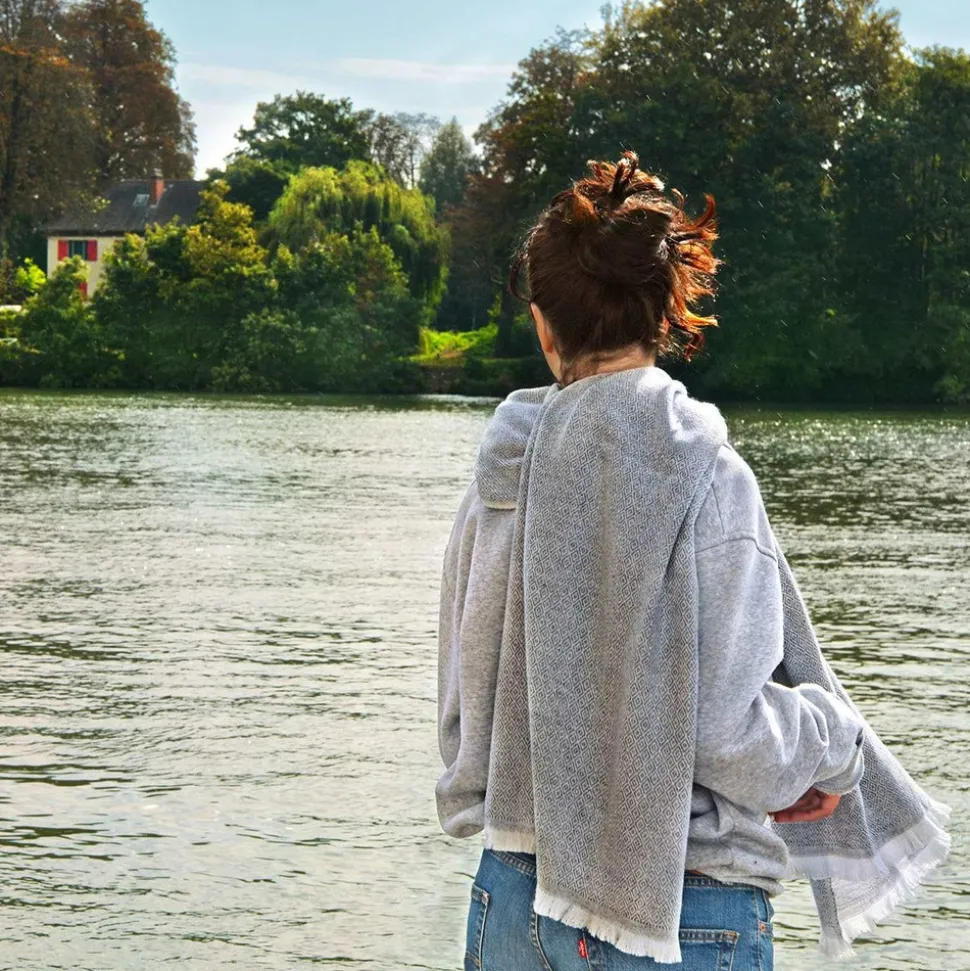 Cette écharpe en laine et cachemire aux motifs « diamants » deviendra votre accessoire fétiche. Tissée main, cette étole Gris Anthracite a été conçue au Népal par des artisans locaux qui tissent les fibres sur des métiers à tisser pour plus d’épaisseur et de moelleux. Le cachemire de cette grande écharpe a été produit grâce à la race de chèvre « Capra Hircus », qui vit à plus de 4000m d’altitude dans les montagnes de l’Himalaya. Sa couleur Gris Anthracite avec ses motifs « diamants » font de cette étole un élément harmonieux pour votre dressing. Laissez-vous envelopper par sa doucoeur et son style élégant. Cette grande écharpe peut être portée de plusieurs façons : sur vos épaules en châle ou autour du cou en écharpe oversize. Cette étole est aussi disponible dans d’autres couleurs : étole / pashmina beige amande, étole / pashmina gris argenté, étole / étole / pashmina marron glacé, étole / pashmina camel. Envie d’une écharpe traditionnelle Cliquez sur nos écharpes en cachemire et laine. Composition : 20% cachemire – 80% laine vierge. Origine : Cachemire du Népal provenant de la chèvre « Changra » / Laine vierge. Coloris : Gris Anthracite / Couleur naturel de la Chèvre. Finition : Petites franges droites. Taille : Grande Echarpe (70 x 210 cm). Poids : 275 grammes. Pashmina en cachemire et laine fabriquées à la main au Népal